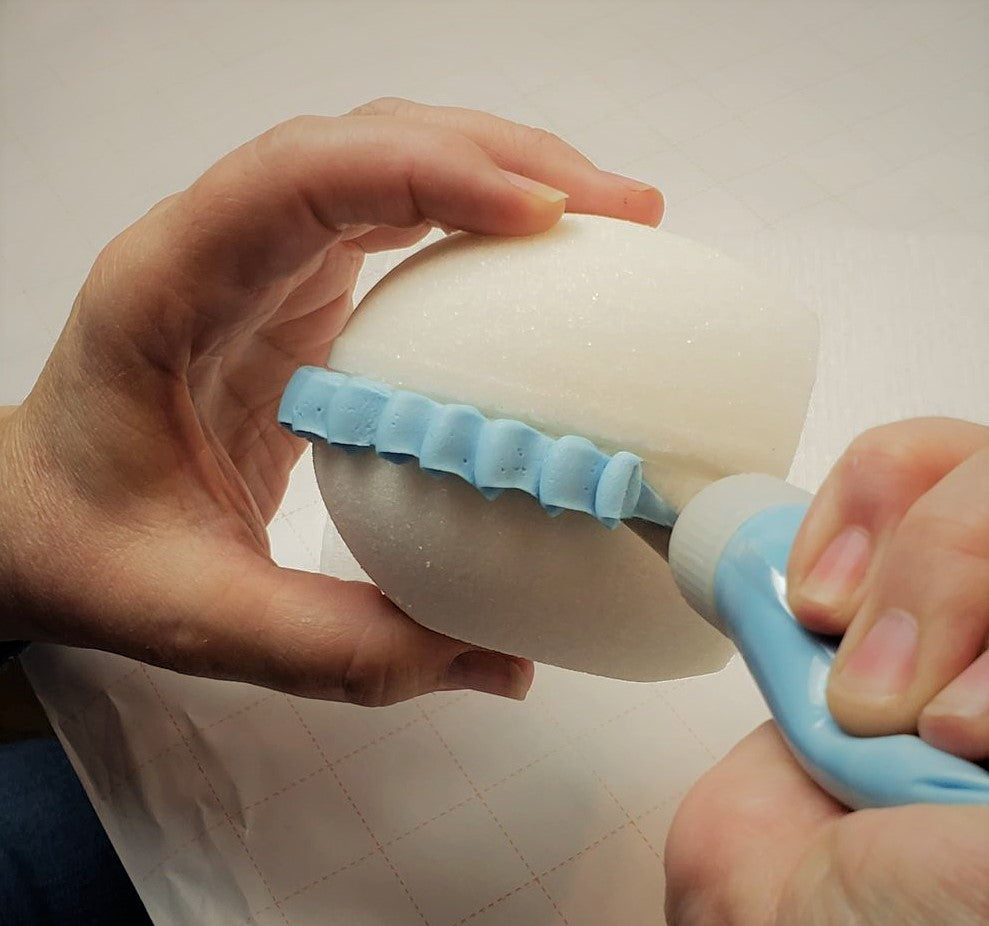 Next you can close the egg and begin adding the borders to cover the seam. What style border would you use?