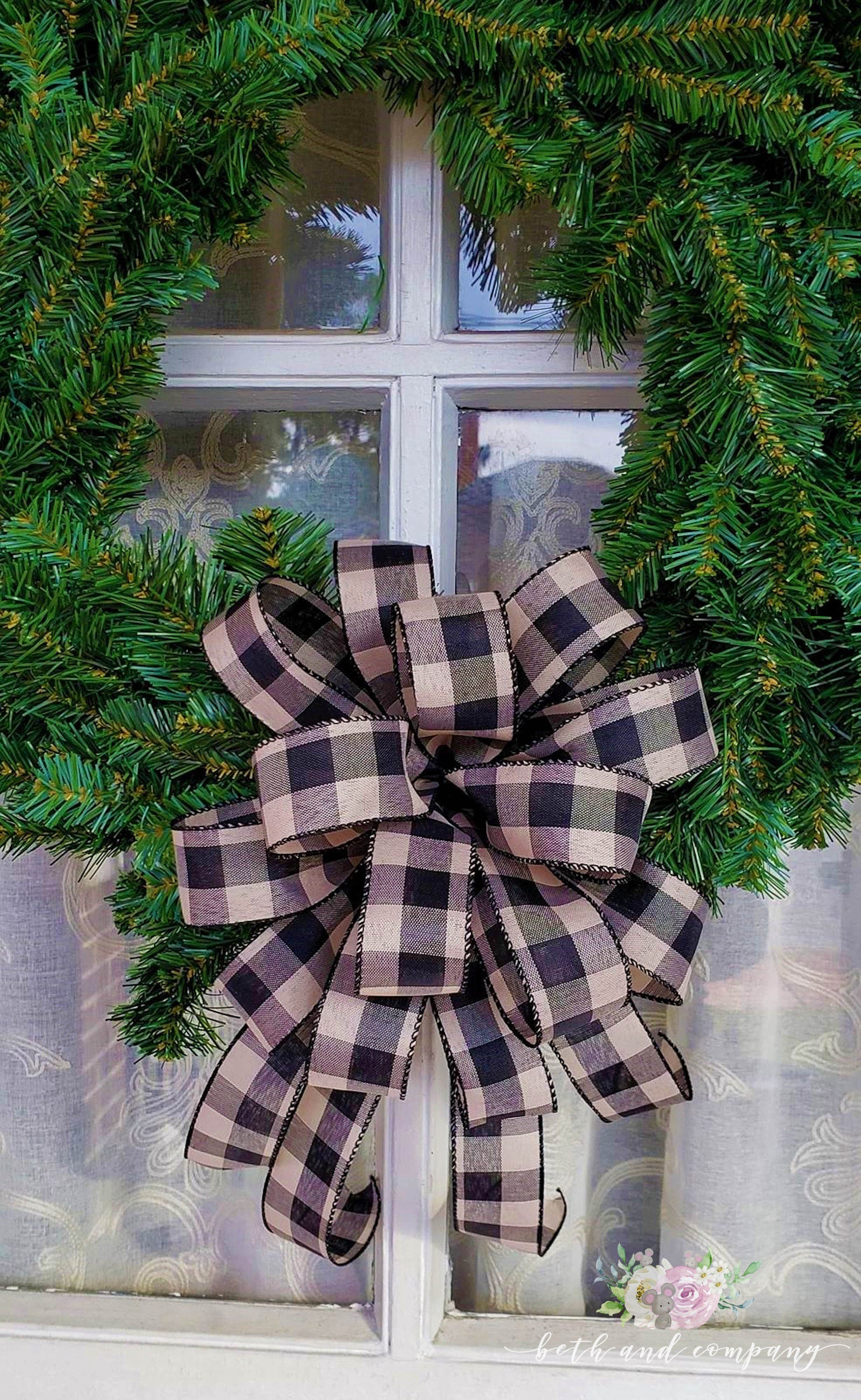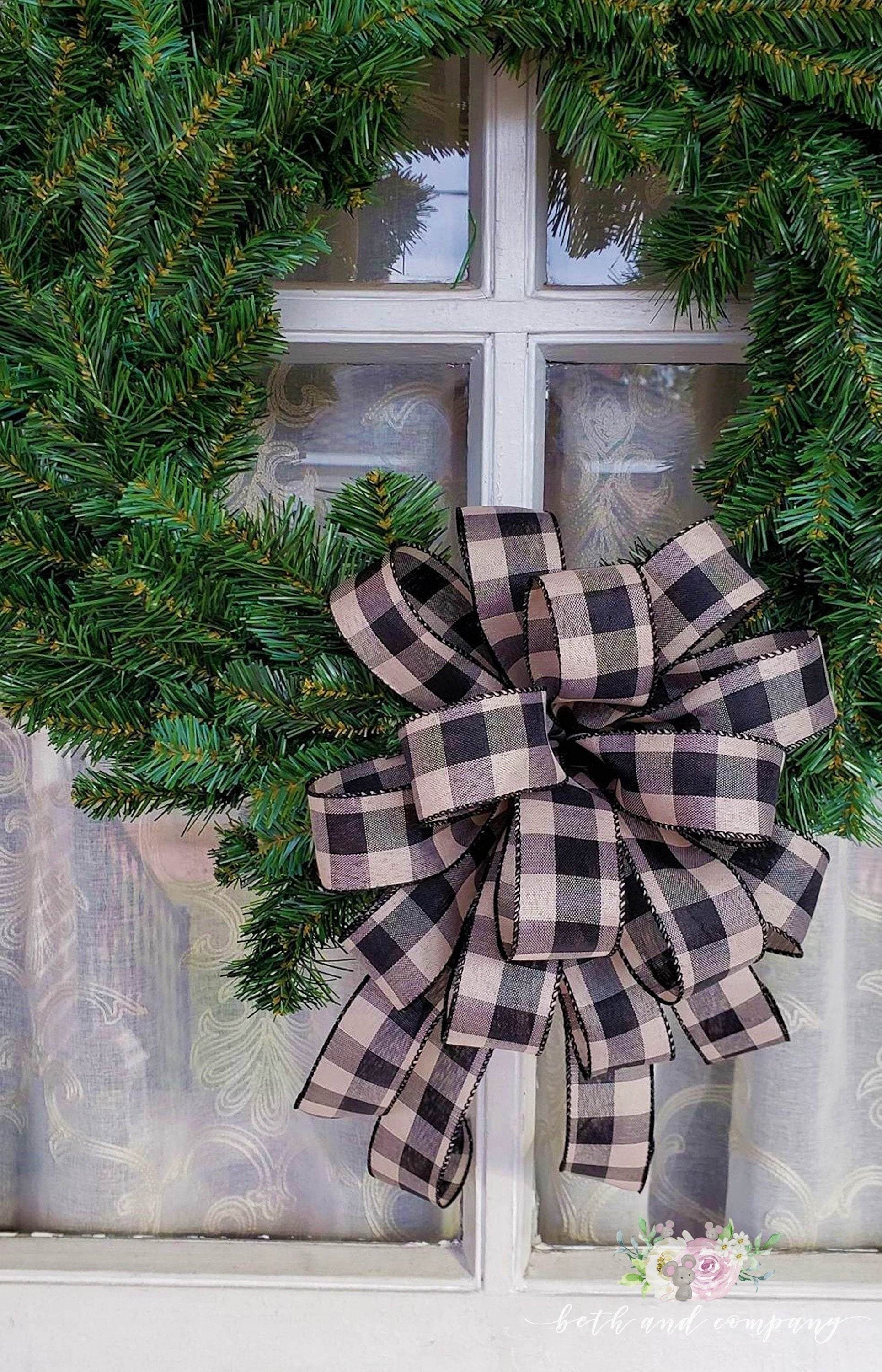 Black and Cream Buffalo Plaid Bow, Buffalo Plaid Farmhouse Spring Summer Bow