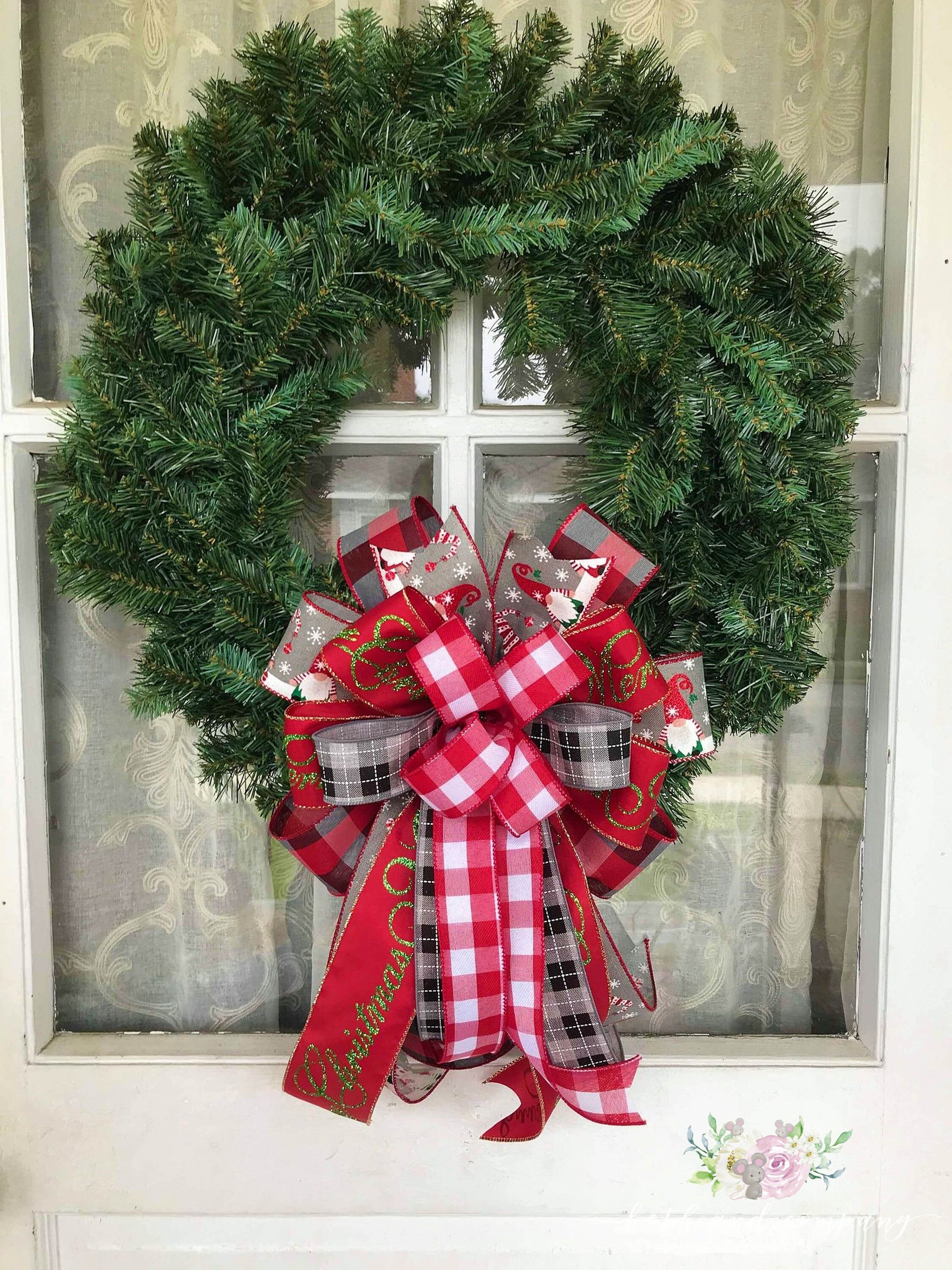Christmas Gnome Wreath Bow is ready to hang on your door. Its 12" wide and will make a great statement alone. Add your own Christmas picks and you'll have a diy Christmas wreath in minutes.