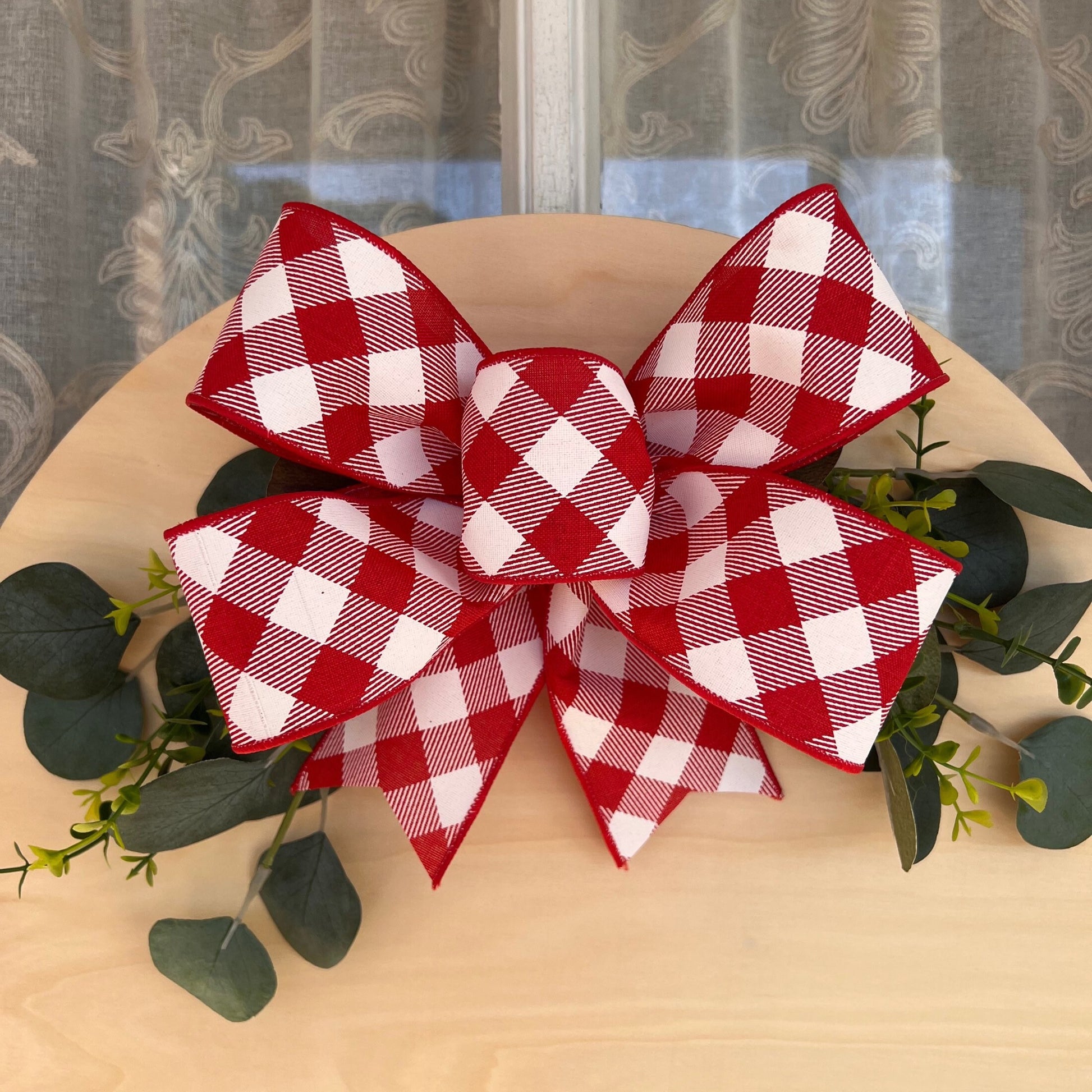 Christmas Bow Door Hanger Bow Red and White Diagonal Plaid 10 inch Bow Small Bow for Door Sign Lantern Bow