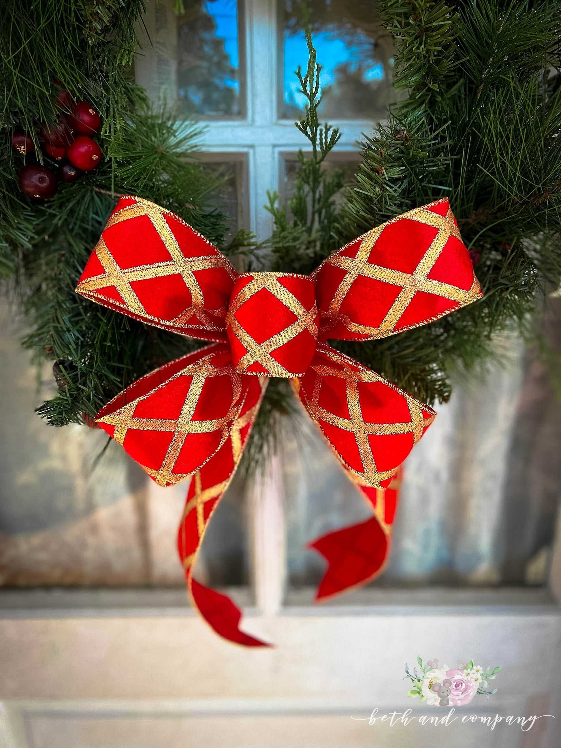 Christmas Bow Red and Gold Plush Velvet 11 Inch Bow Elegant Wreath Bow Christmas Front Door Decor