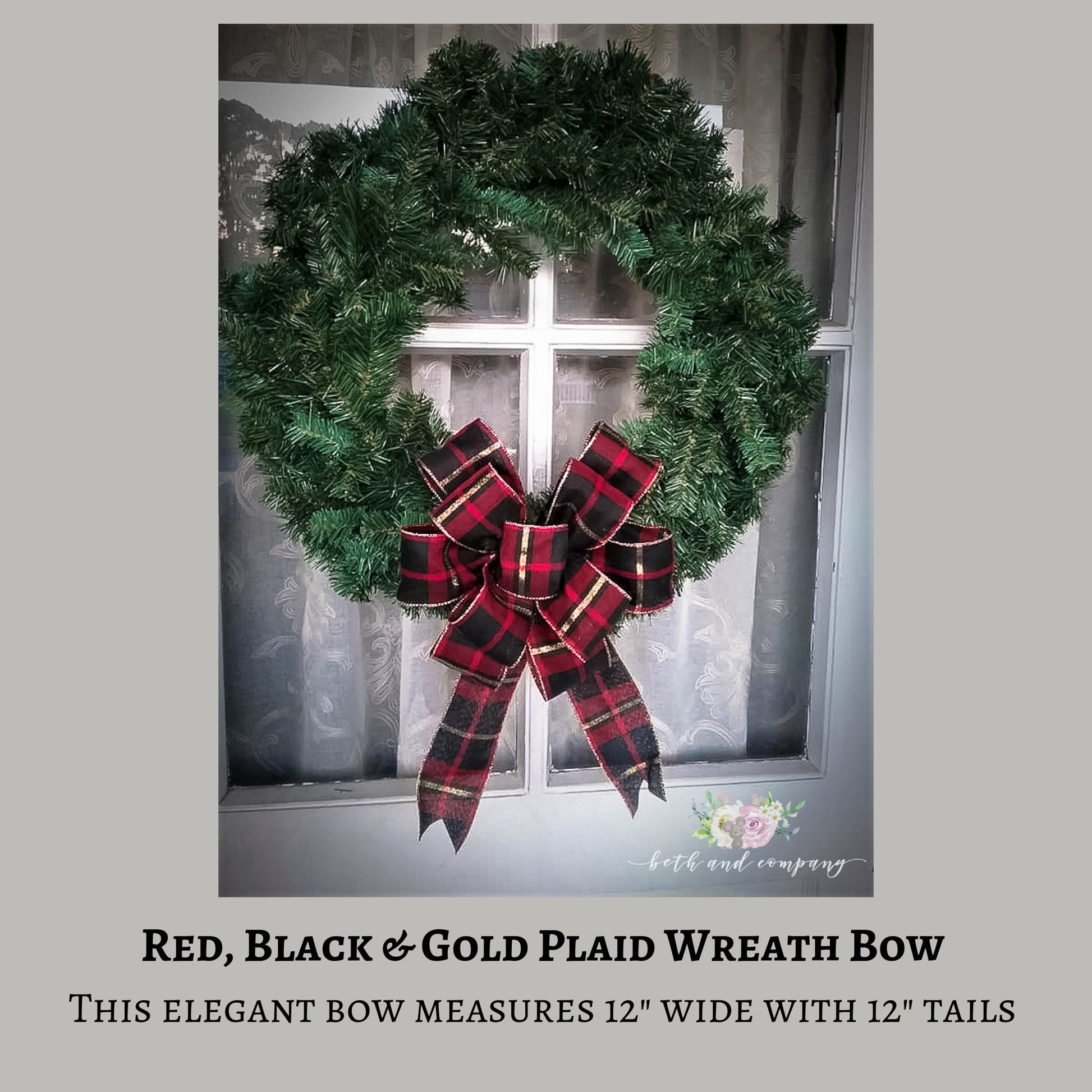 Christmas Bow Red Black and Gold Christmas Wreath Bow Farmhouse Santa Bow