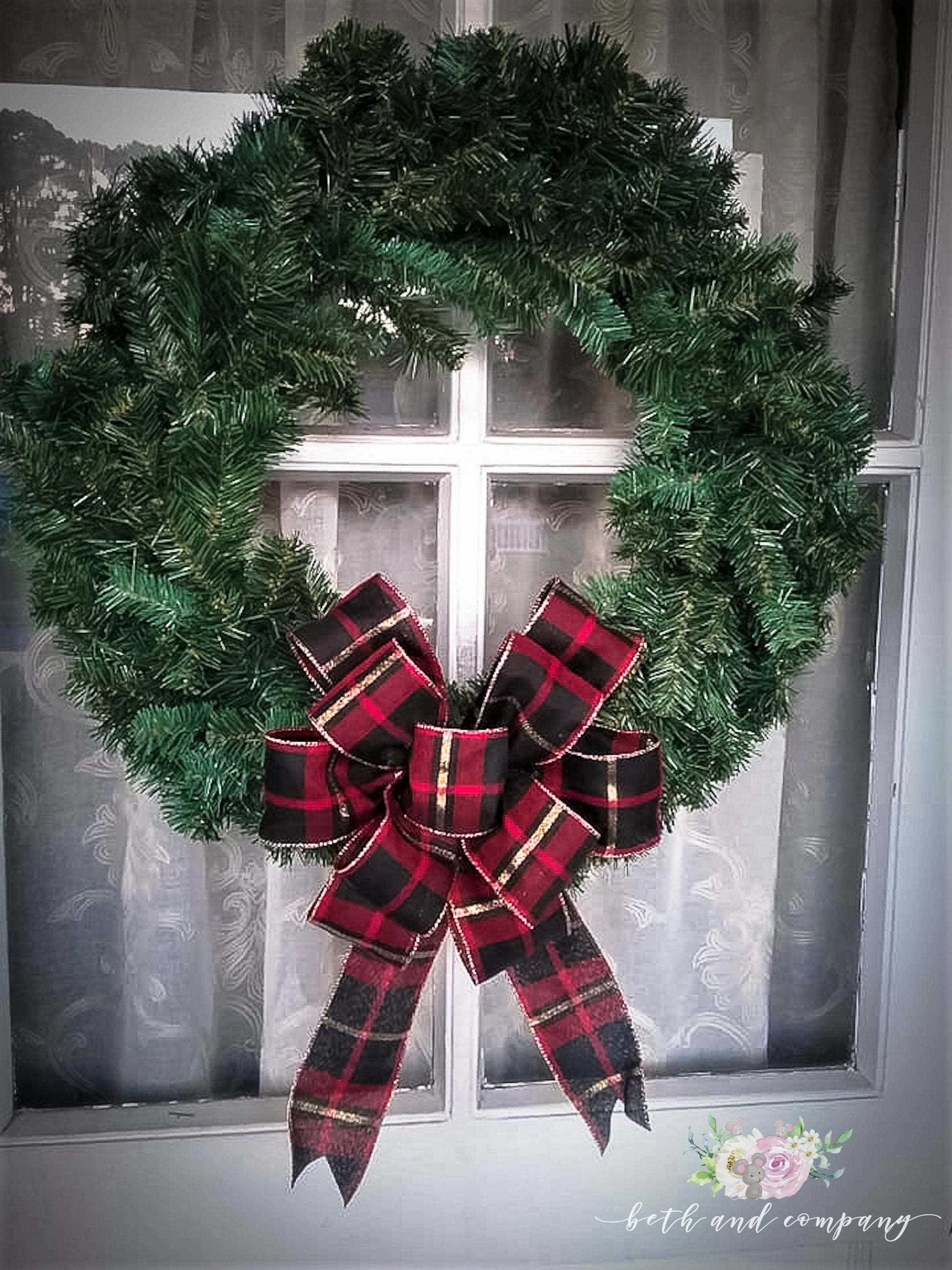 This thin profile bow is perfect for wreaths between doors. Its 12" wide and will make a great statement alone. Add your own Christmas picks and you'll have a diy Christmas wreath in minutes.