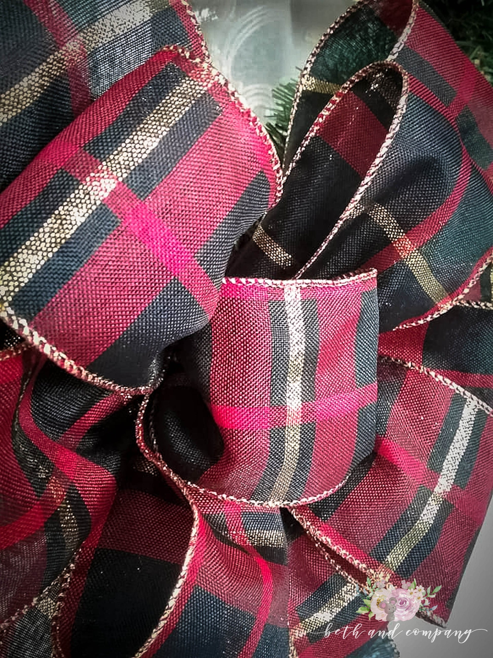 • Made with indoor wired ribbon that can easily be reshaped. Can be used on a wreath on your front