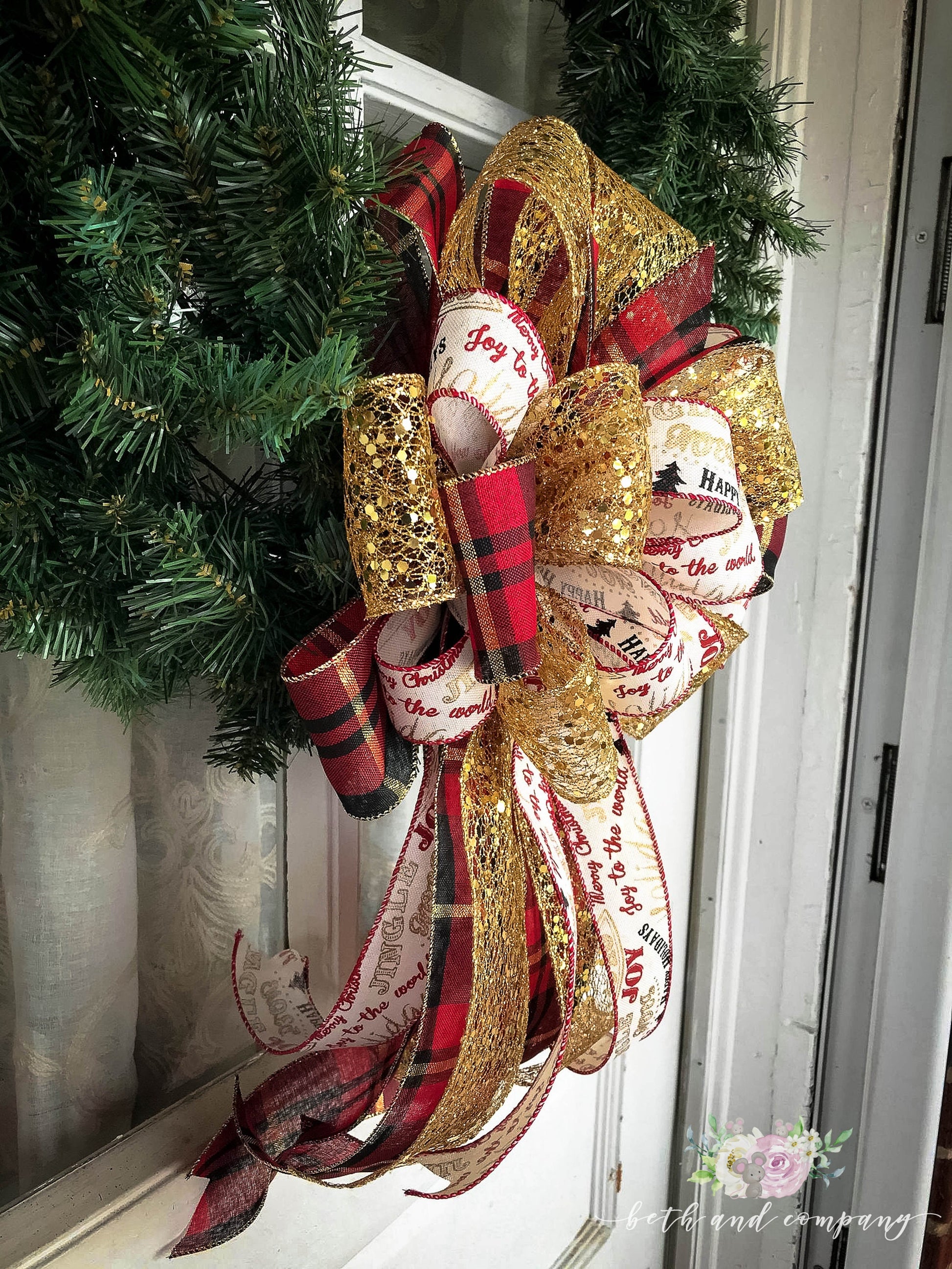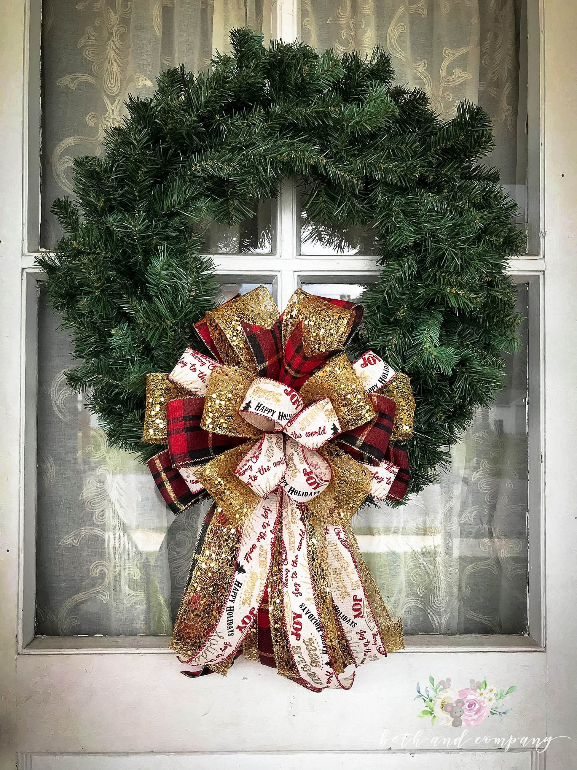 • Made with indoor wired ribbon that can easily be reshaped. Can be used on a wreath on your front