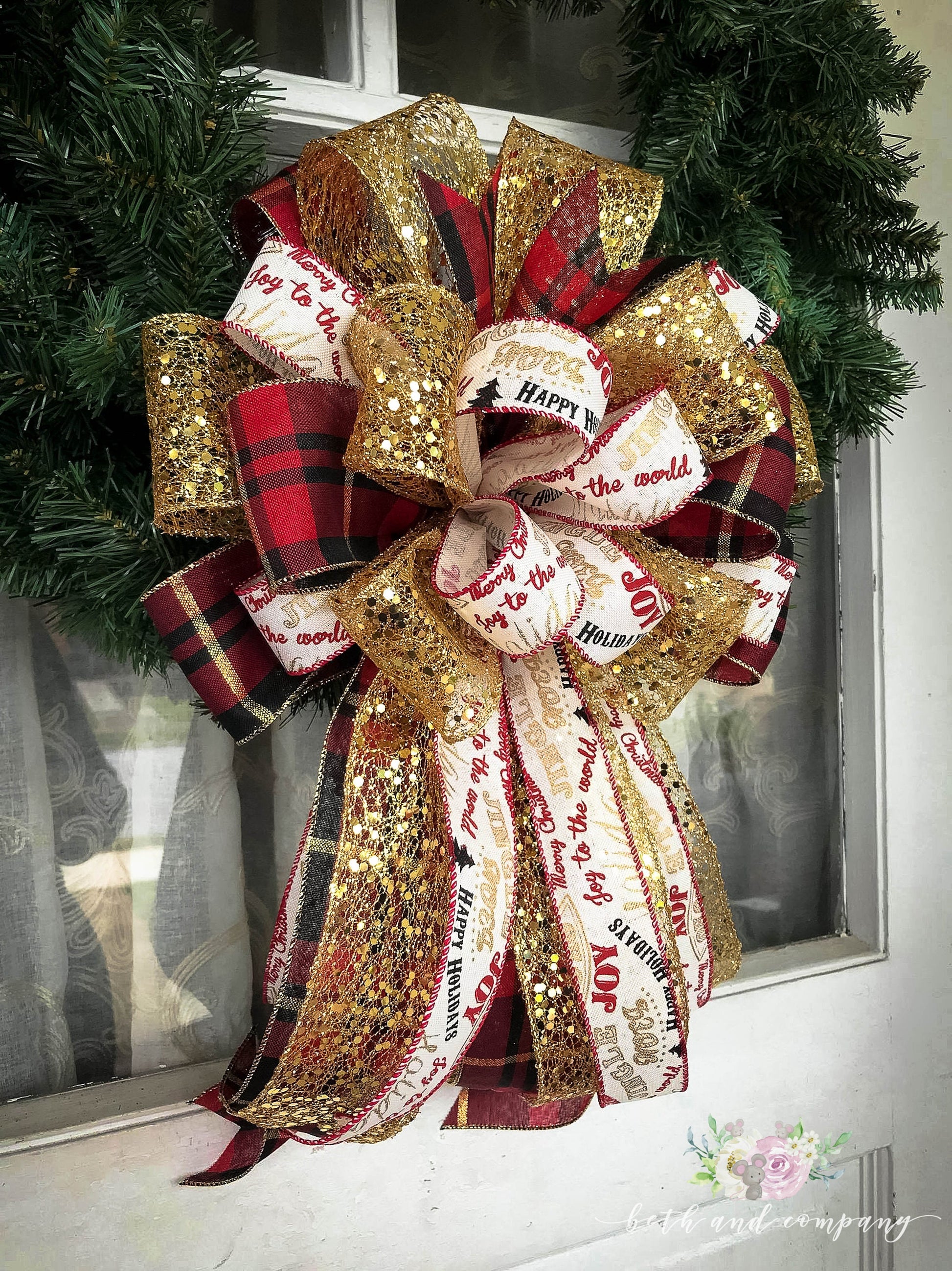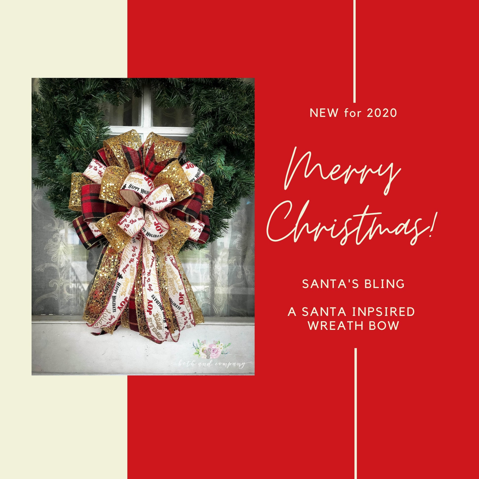 Red/Black/Gold Bling wreath bow, Santas Bling, Tree Topper is beautifully hand crafted with Santa inspired wired ribbons. Inbox me for your matching lantern, swag and mailbox bows.