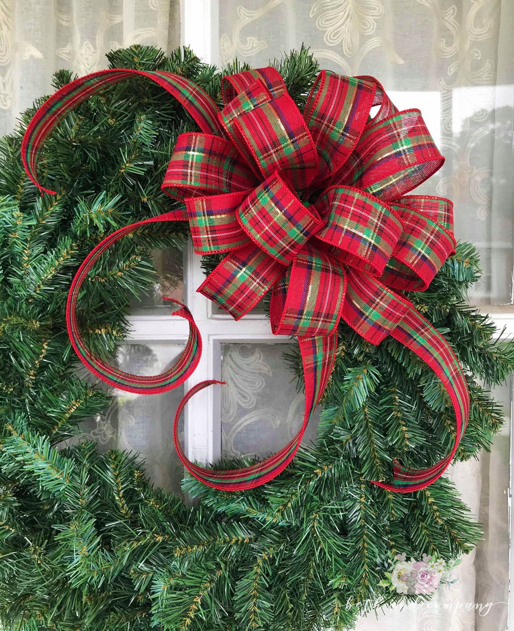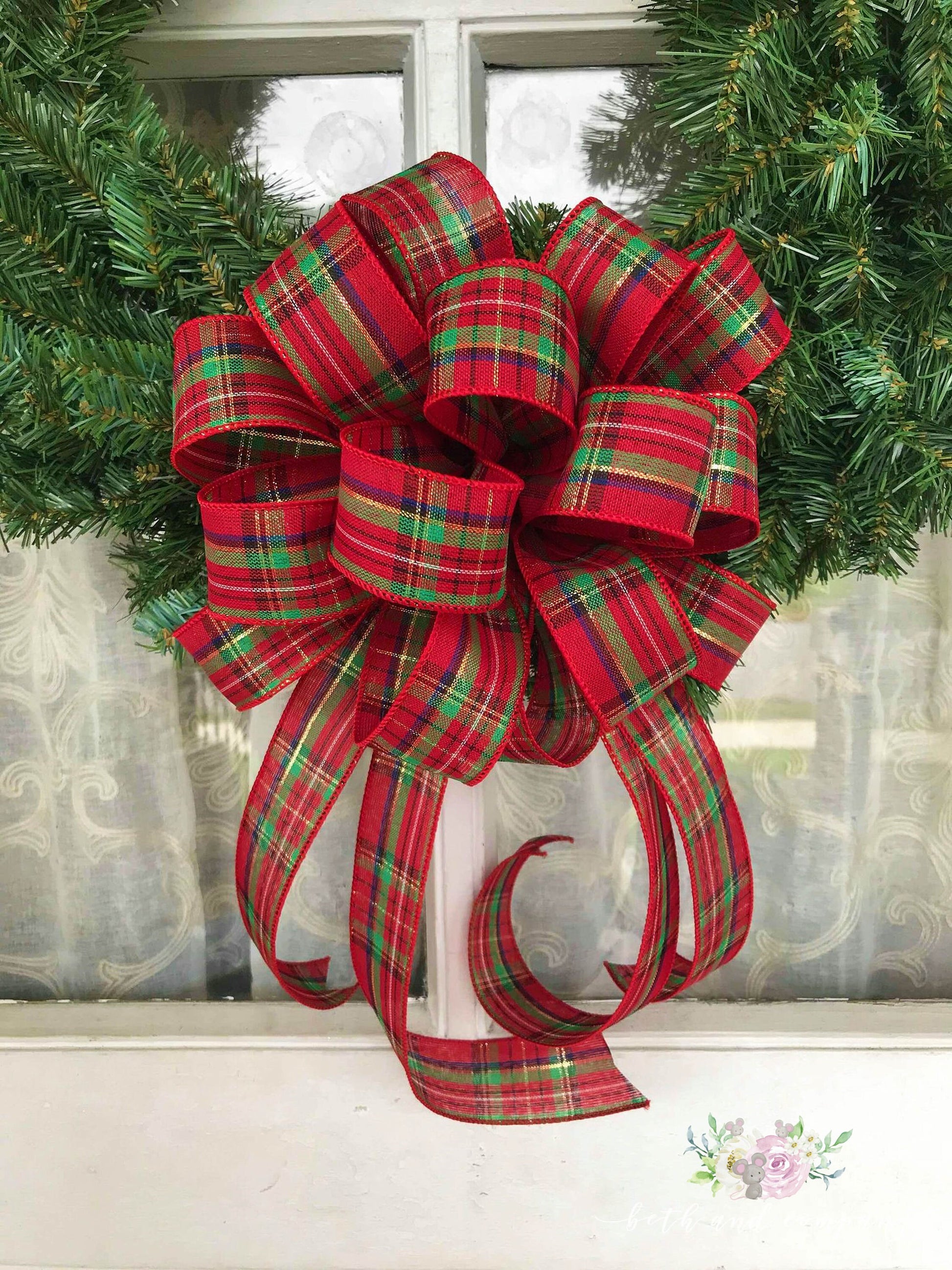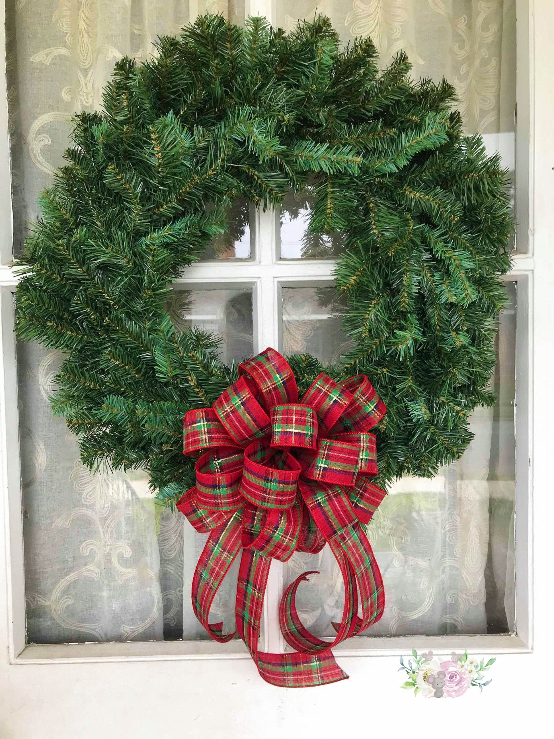 Traditional Christmas Plaid Wreath Bow for your front door. 10" wide bow. Your wreath isn’t finished without a bow. This is a round style bow with four streamers that will help you complete your wreath just in time for the holidays.