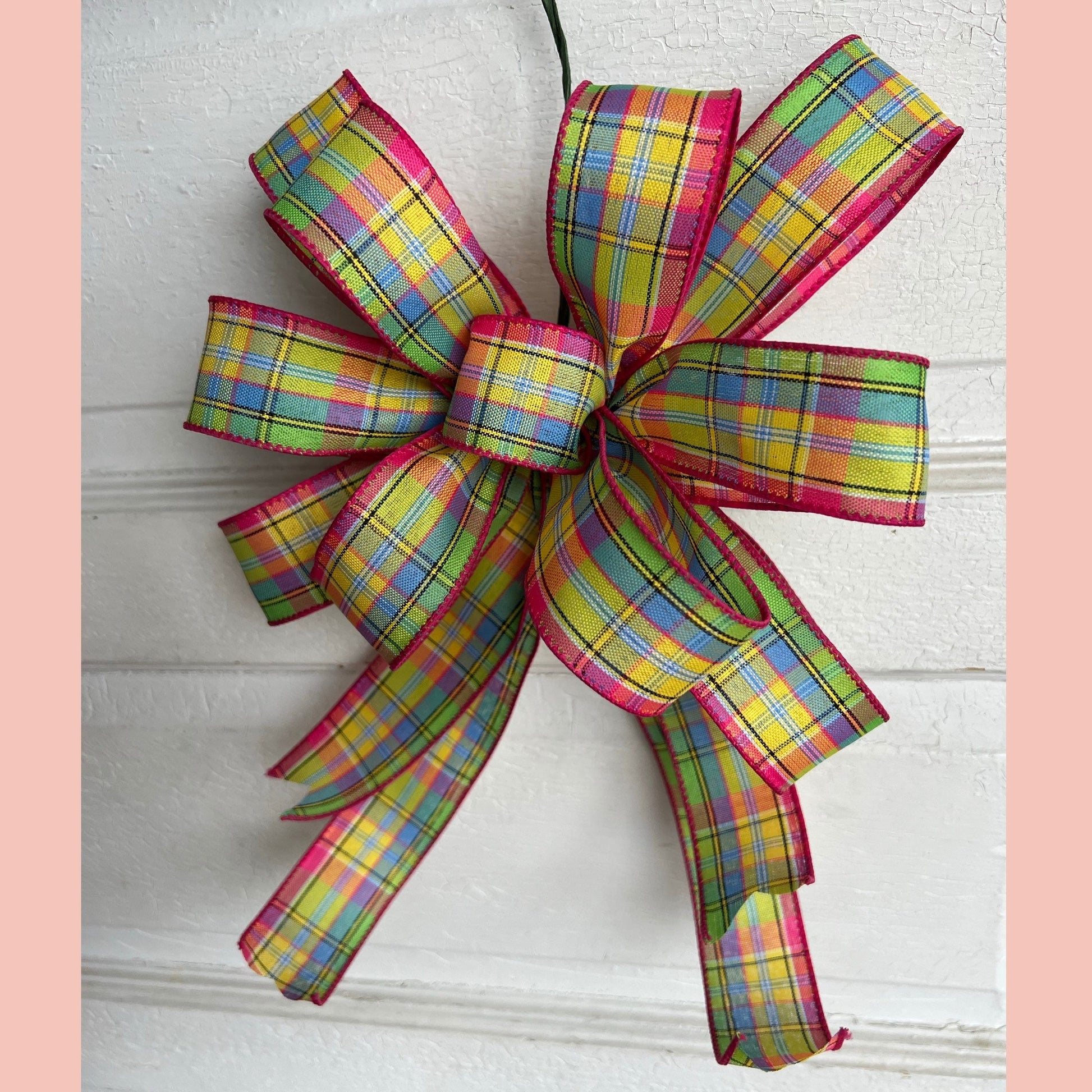 Easter Basket Bow, Spring Wreath Bow, Easter Bow for Front Door, Easter Decorations, Bright Spring Plaid