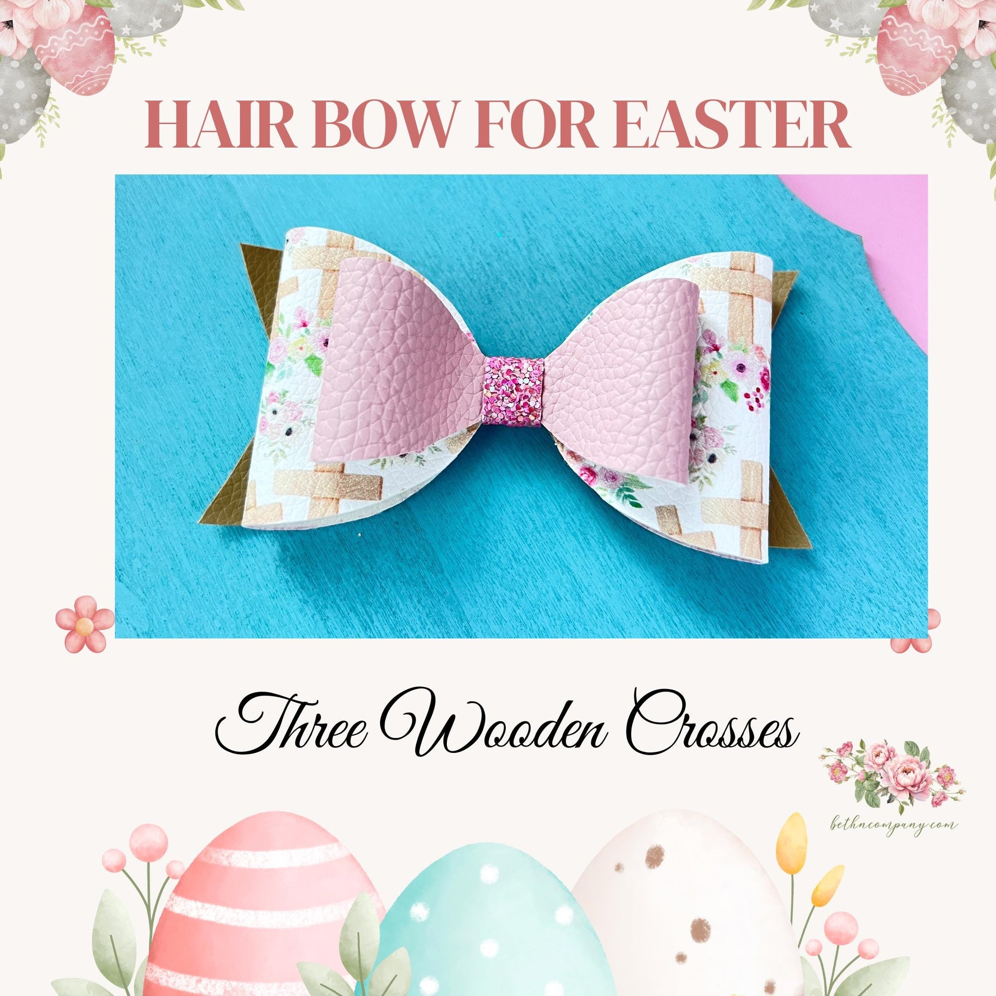 Easter Hair Bow Three Wooden Crosses Design 4” Hair Bows for Girls Bow Clip Hair Accessories Faux Leather Hairbows Easter hair accessory