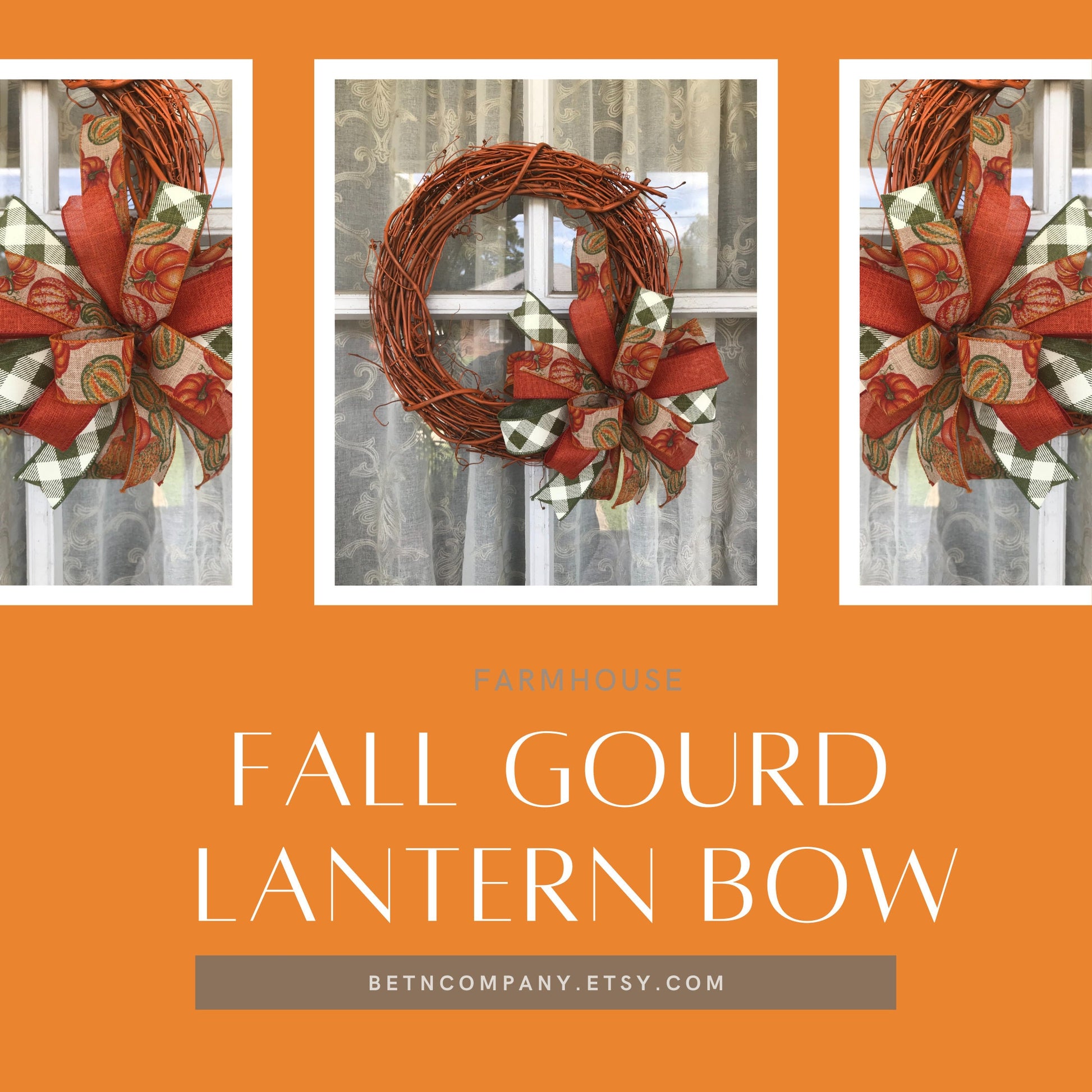 Fall Bow Fall Gourd Bow Lantern Bow Fall decor 10 Inch bow for wreath Outdoor Fall bow