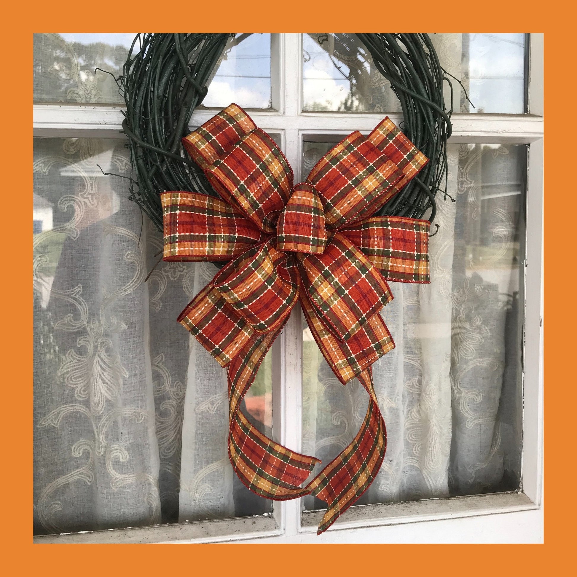 This is a listing for a fall plaid wired ribbon bow with a green grapevine wreath. The bow is perfect for everyday wreaths during fall. Get the wreath with bow or just the bow.