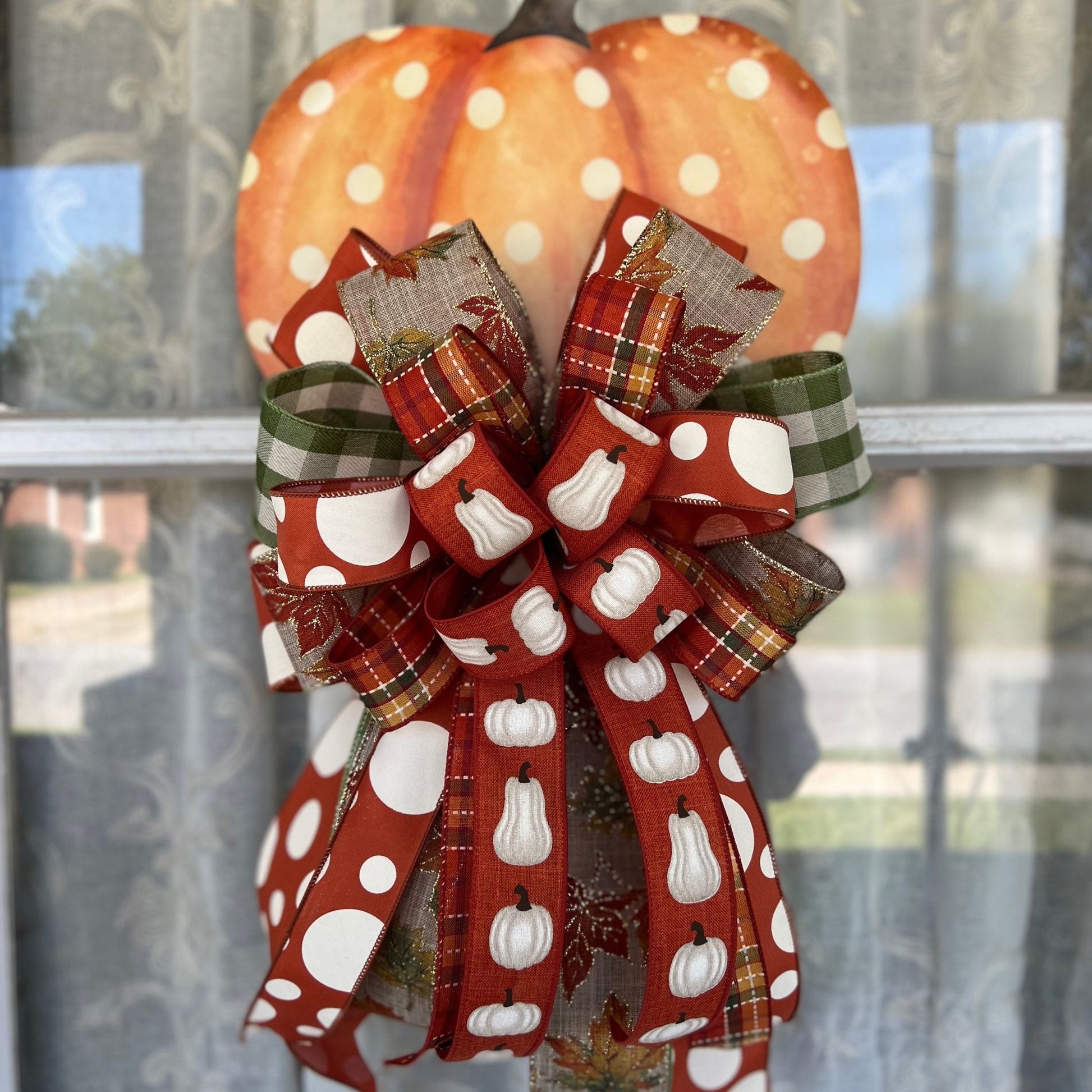 Fall Bow Polka Dot Fall Bow Farmhouse Bow Fall Pumpkin with bow for Front Door Thanksgiving Decorations