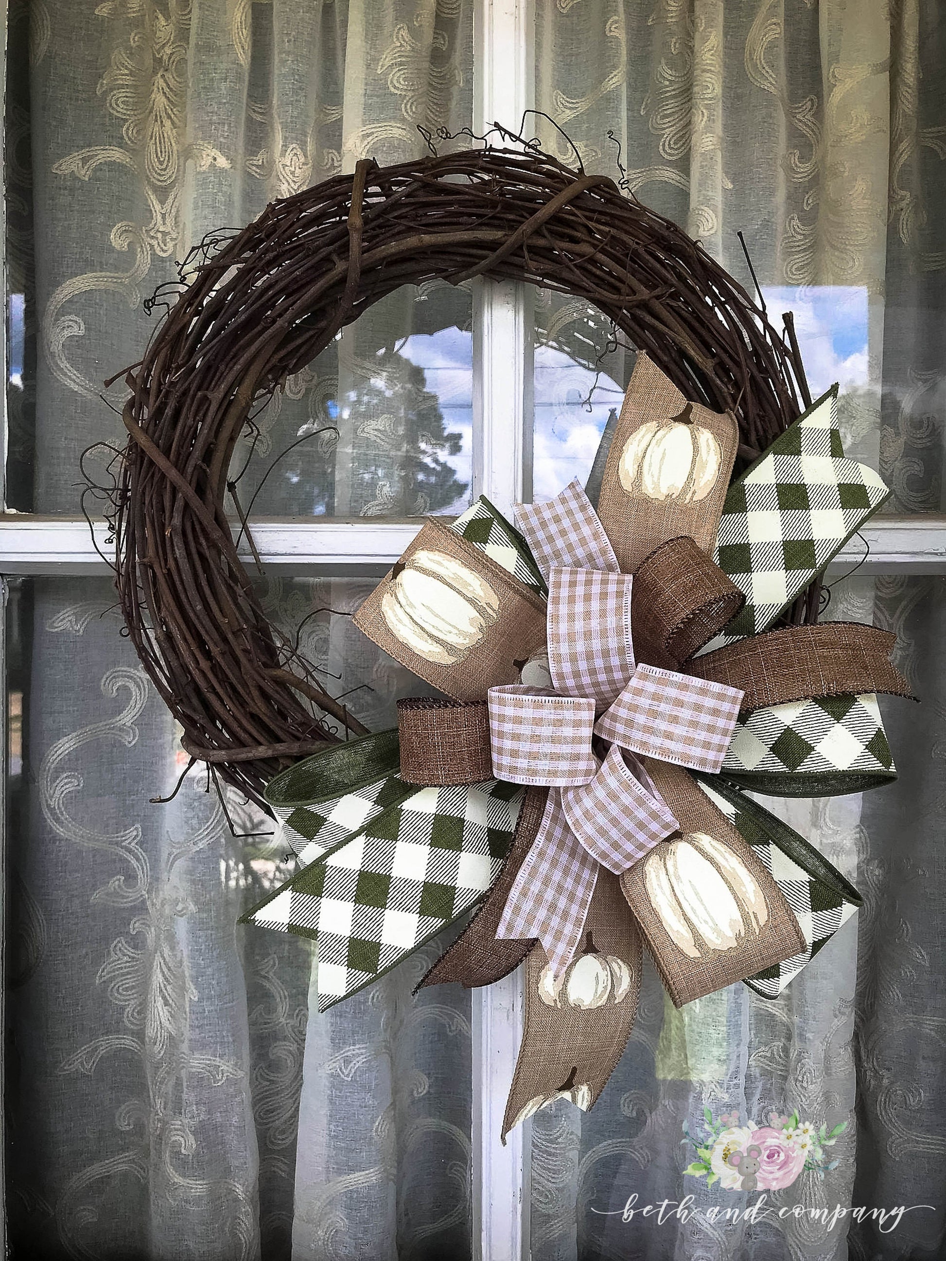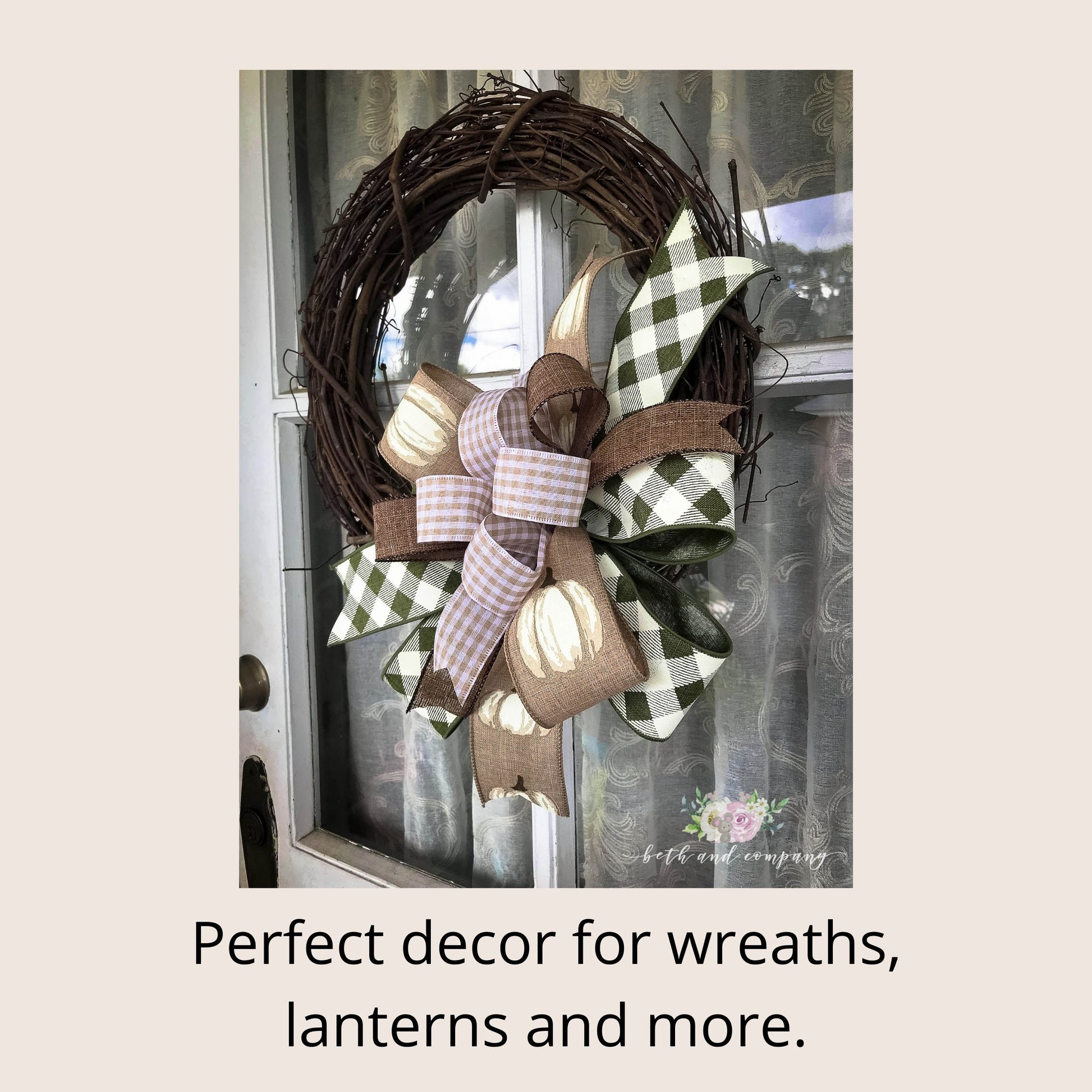 Complete your wreath with my farmhouse white pumpkin wreath bow. It has a beautiful moss green plaid, white pumpkin and farmhouse style wired quality ribbons. Don't forget to order bows for your lanterns and mailboxes! Inbox me!