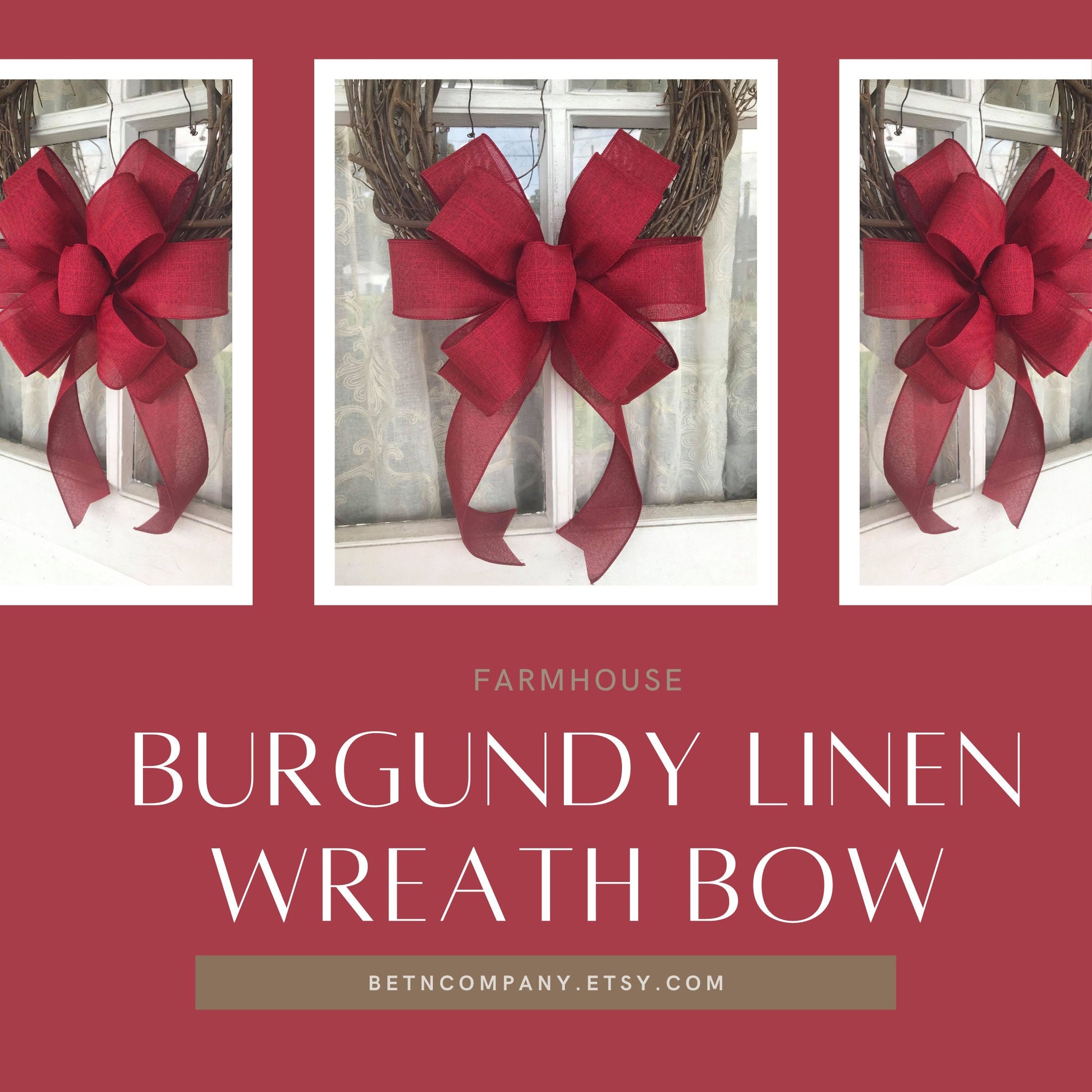 Burgundy fall linen wired ribbon bow. Perfect for everyday wreaths. Great for awareness bows or game day decor.