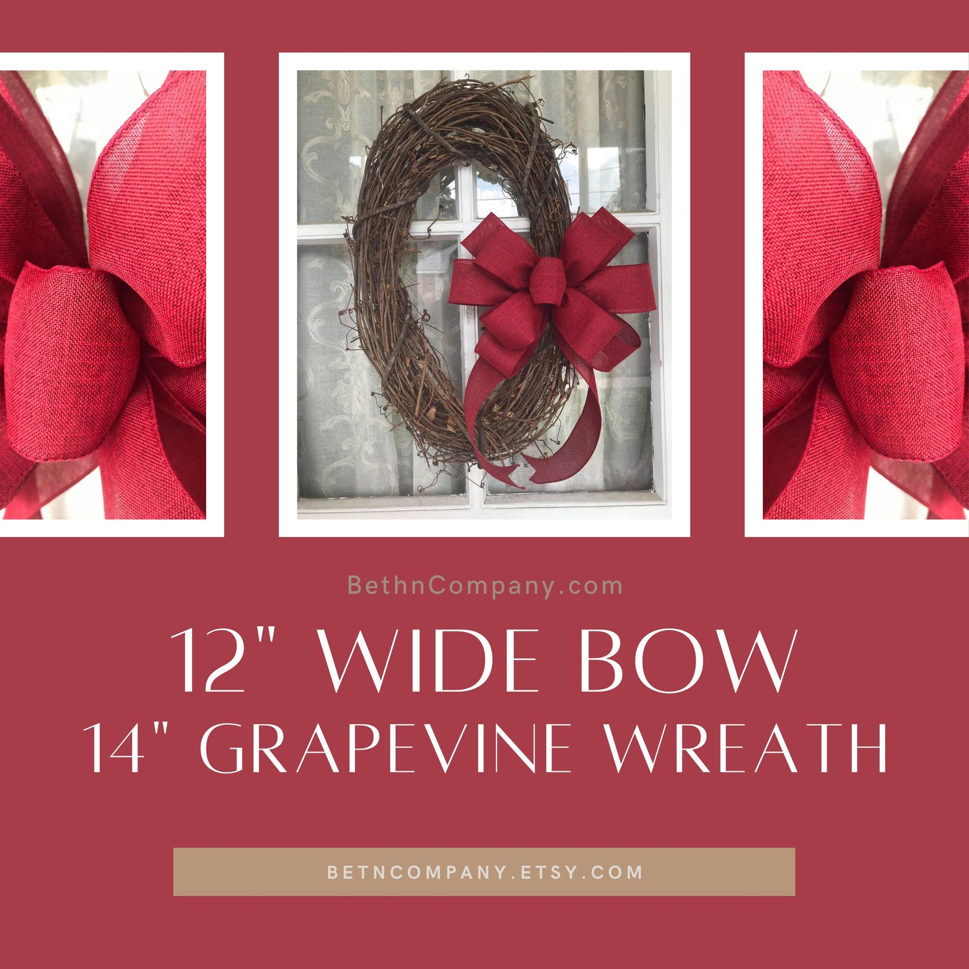 Fall Wreath, Burgundy Linen Bow, Farmhouse wreath, Game Day Bow