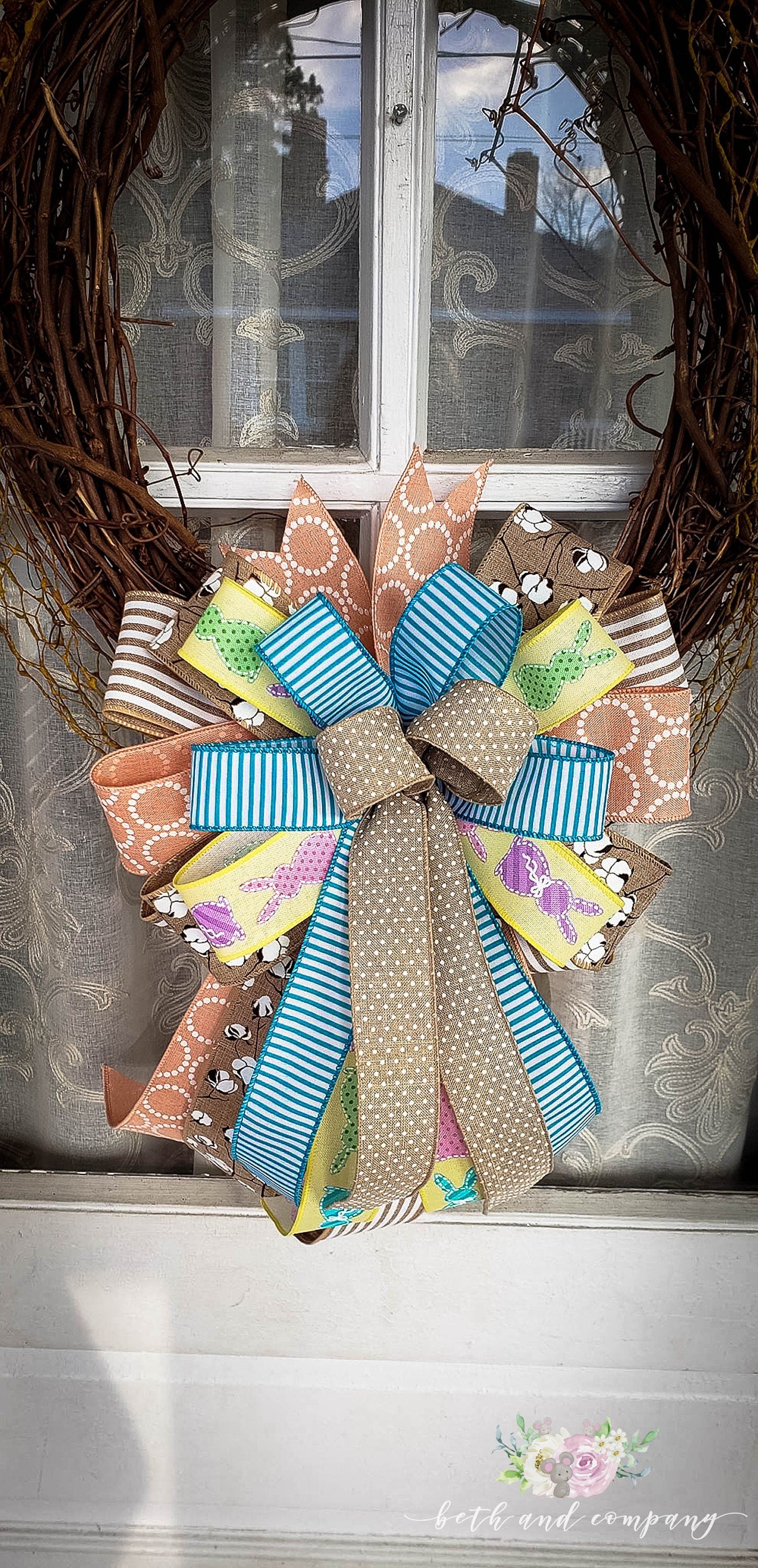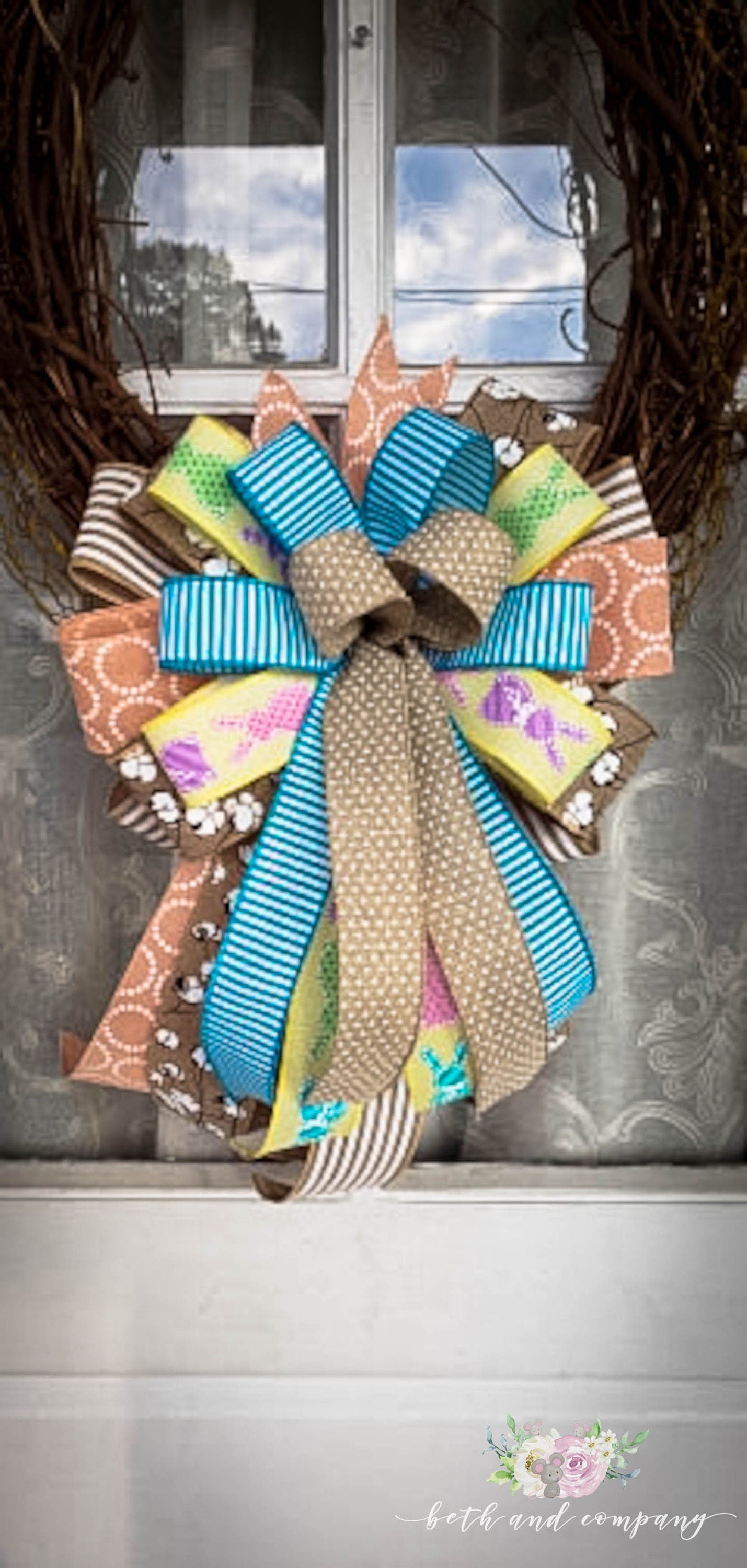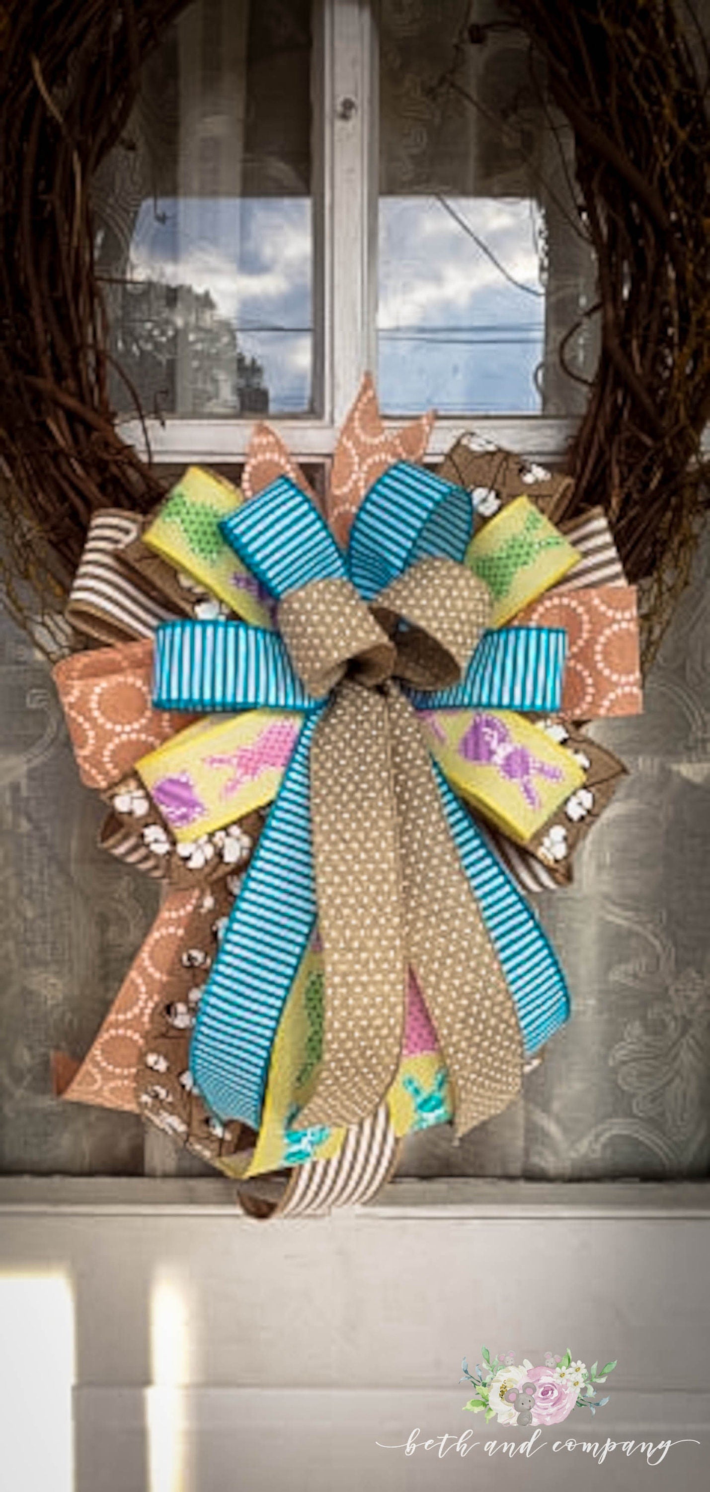 Farmhouse Easter Wreath Bow, Easter Lantern Bow, Spring Wreath Bow, Easter Bunny Bow for Front Door, Easter Decorations, Front Door Decor