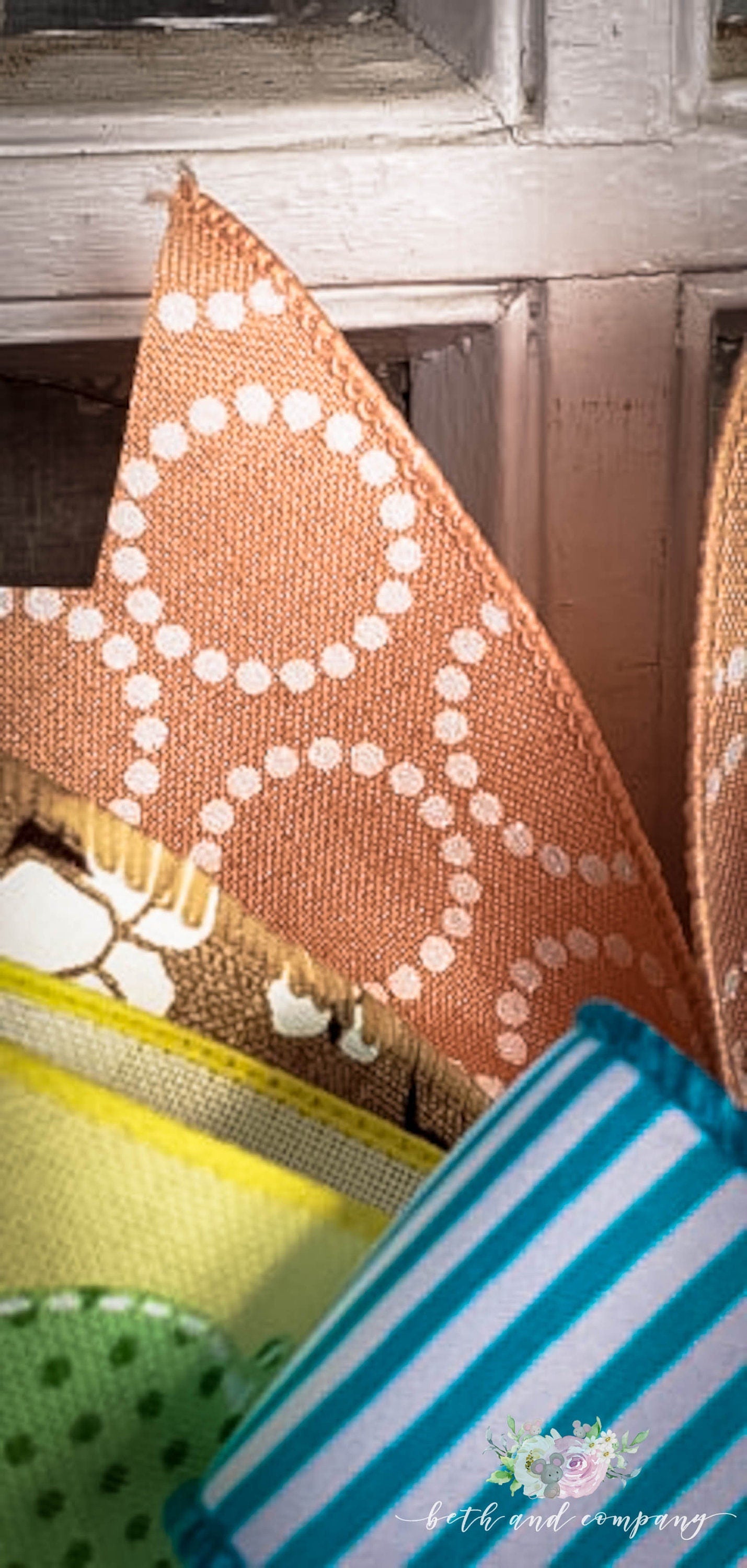 This 12" wide spring Easter wreath bow is very full. Just the right amount of pastel ribbons for spring.