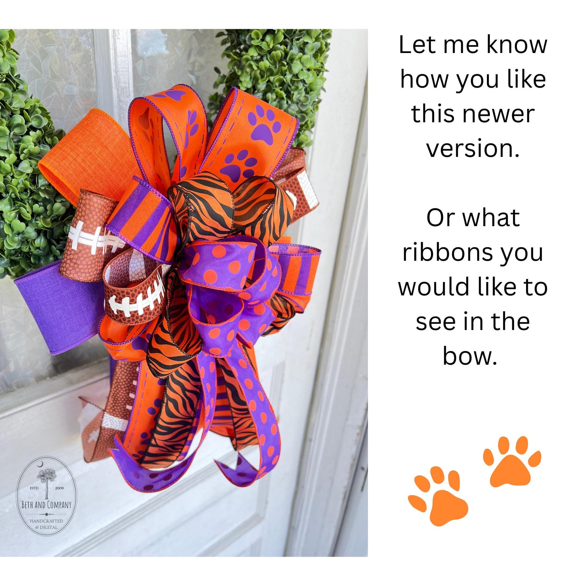 Football Wreath Bow Clemson Tigers Inspired Wreath Bow Home Decor Game Day Bow Football Team Decorations Matching Lantern Bow