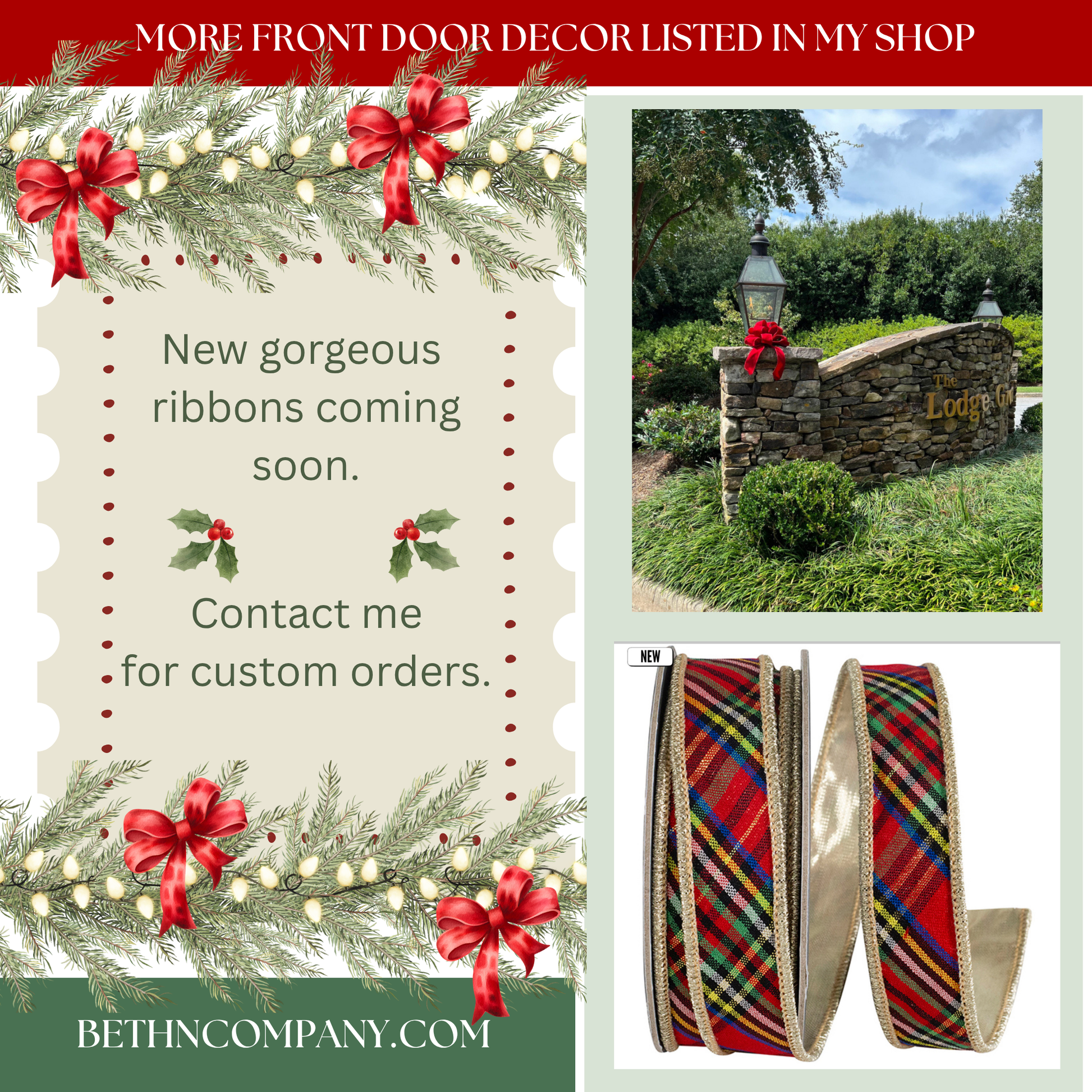 Hand-tied using premium wired ribbon for fullness, structure, and long-lasting shape — a charming way to make your holiday décor delightfully merry and bright!