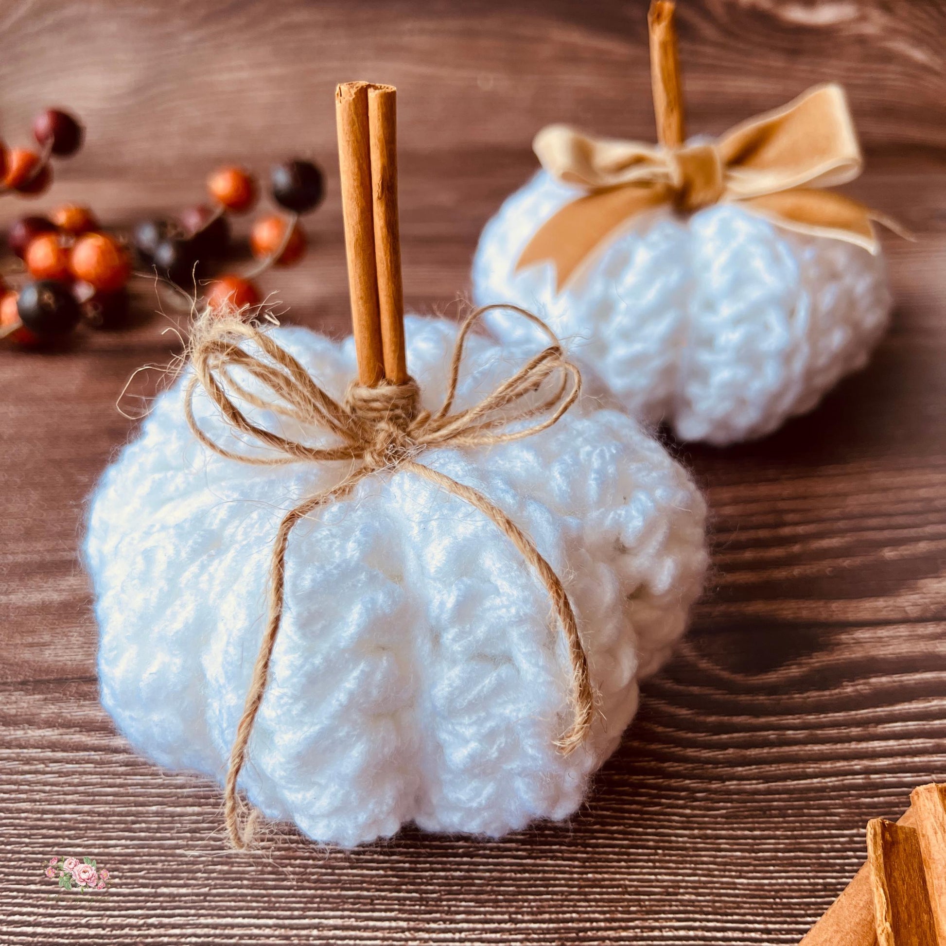 Handmade Small White Crochet Pumpkin – Fall Decor, Neutral Farmhouse Style, Tiered Tray Accent, Autumn Table Centerpiece