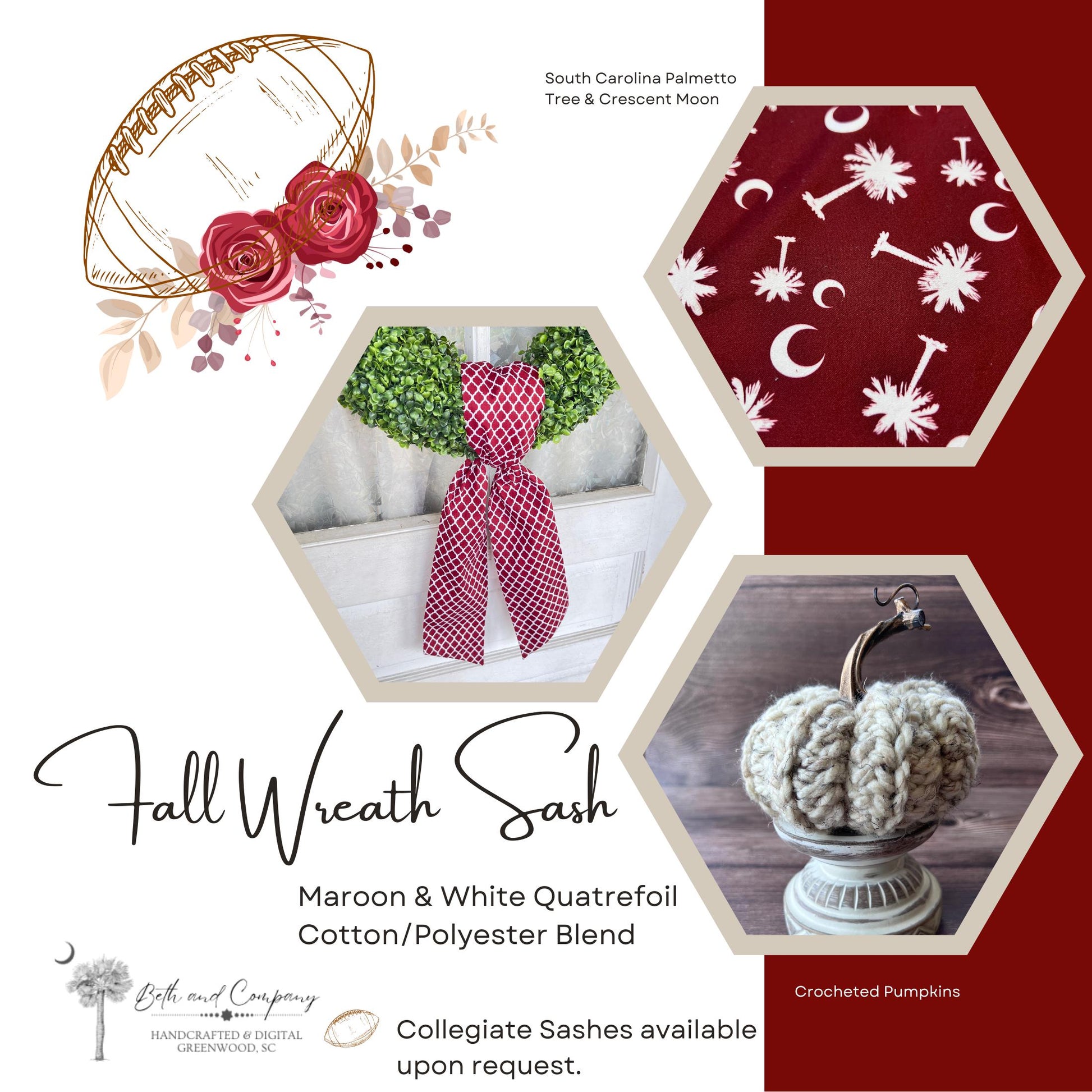 Maroon Wreath Sash Maroon & White Quatrefoil Wreath Front Door Decor Wreath Sash Handmade Fabric Sash Team Decoration Grand Millennial Style