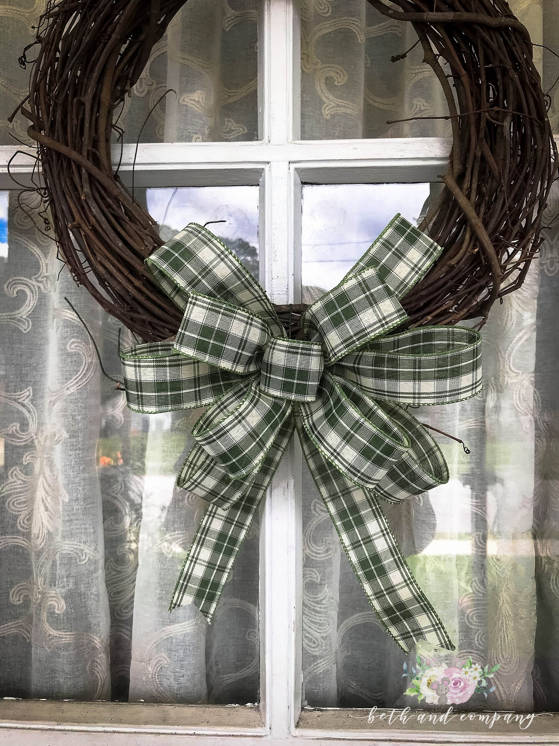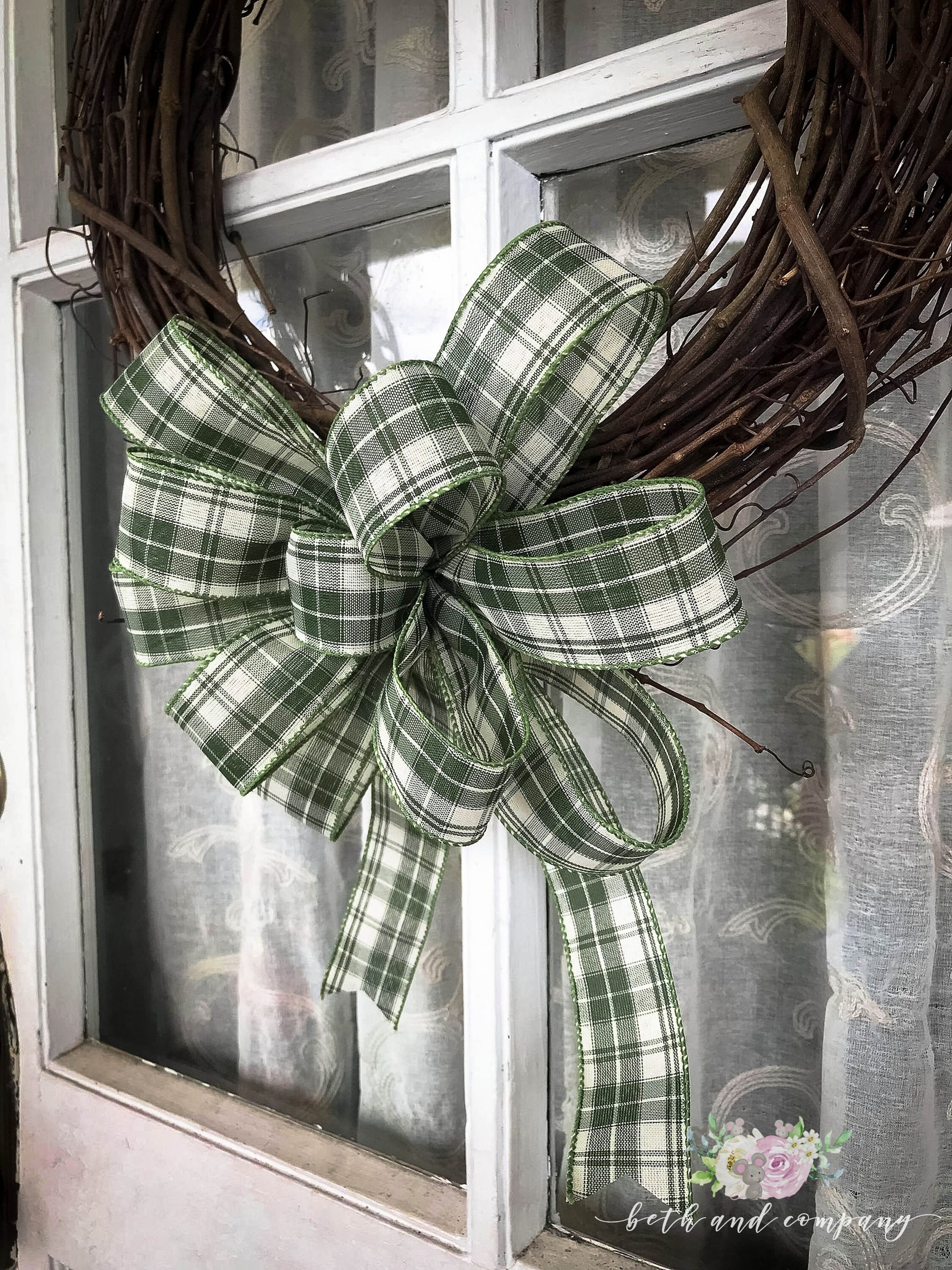 Moss Green Plaid Bow, Farmhouse Plaid Wreath Bow, Homespun Plaid