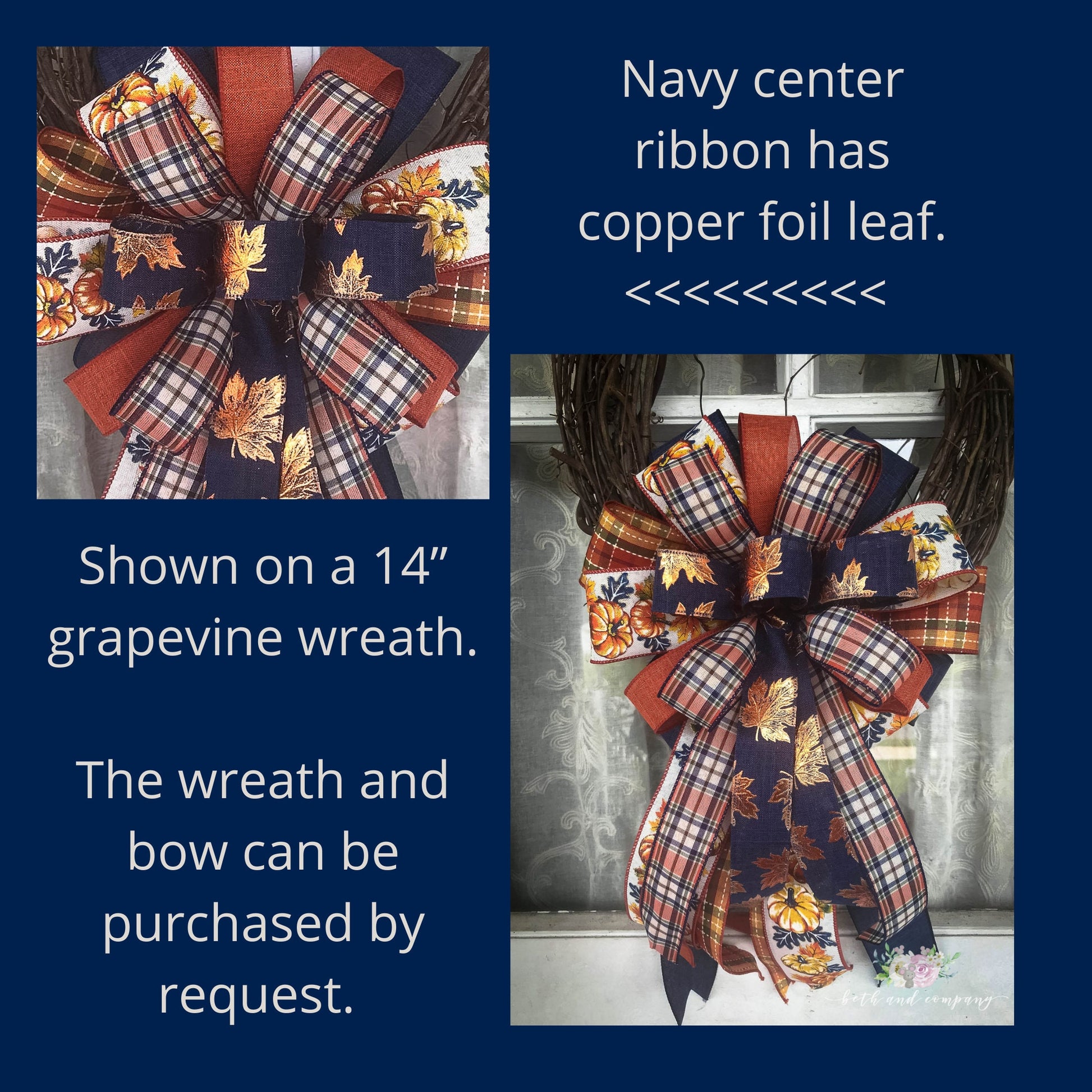 Navy Fall Bow for Front Door Fall Wreath Bow Fall Decor