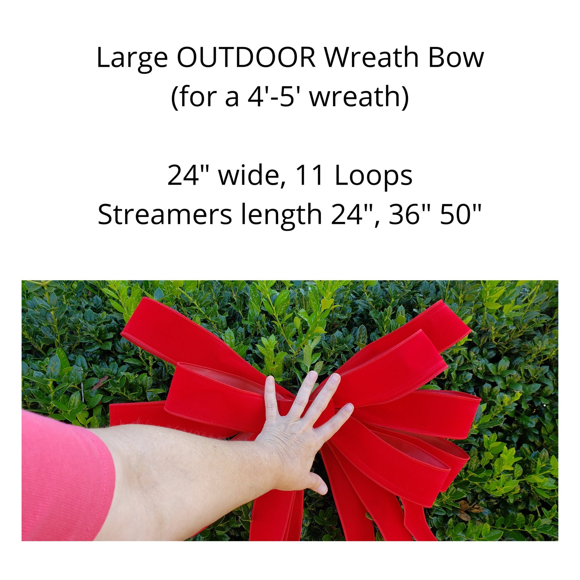 OUTDOOR Large Red Velvet Wreath Bow, Bow for 3-4 Foot Wreath with plastic liner