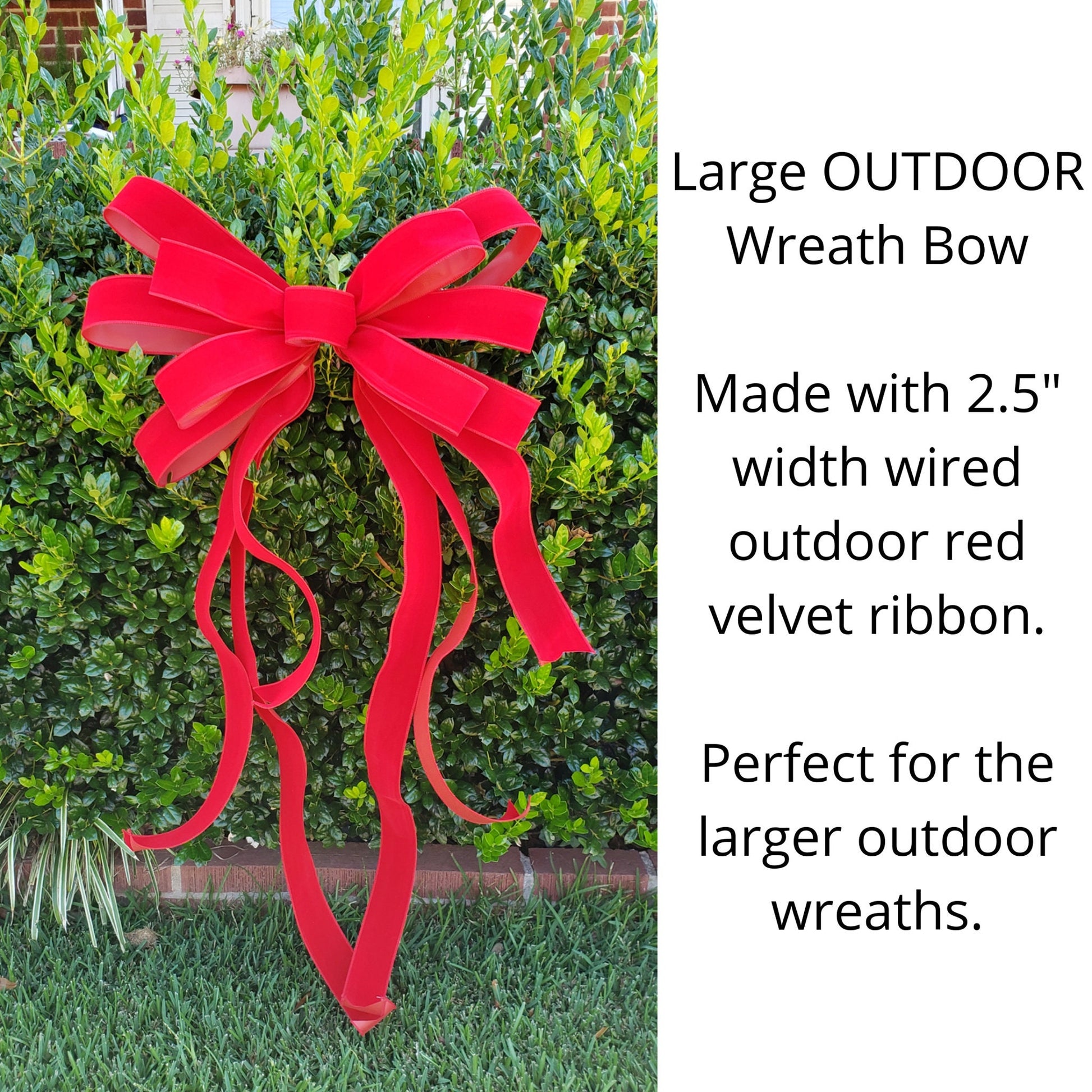 Large Outdoor Red Velvet Wreath Bow. Perfect for 3'-4' wreaths.