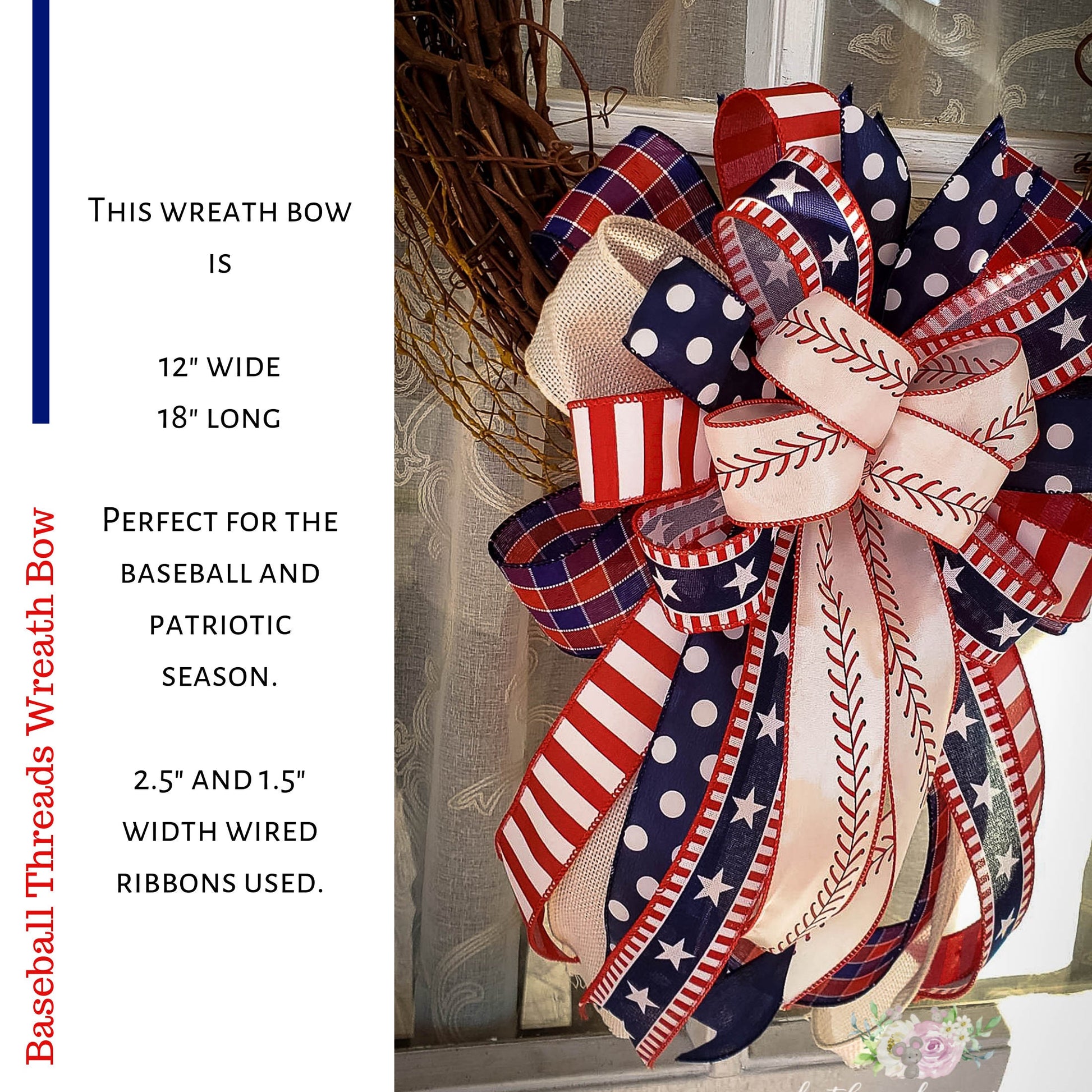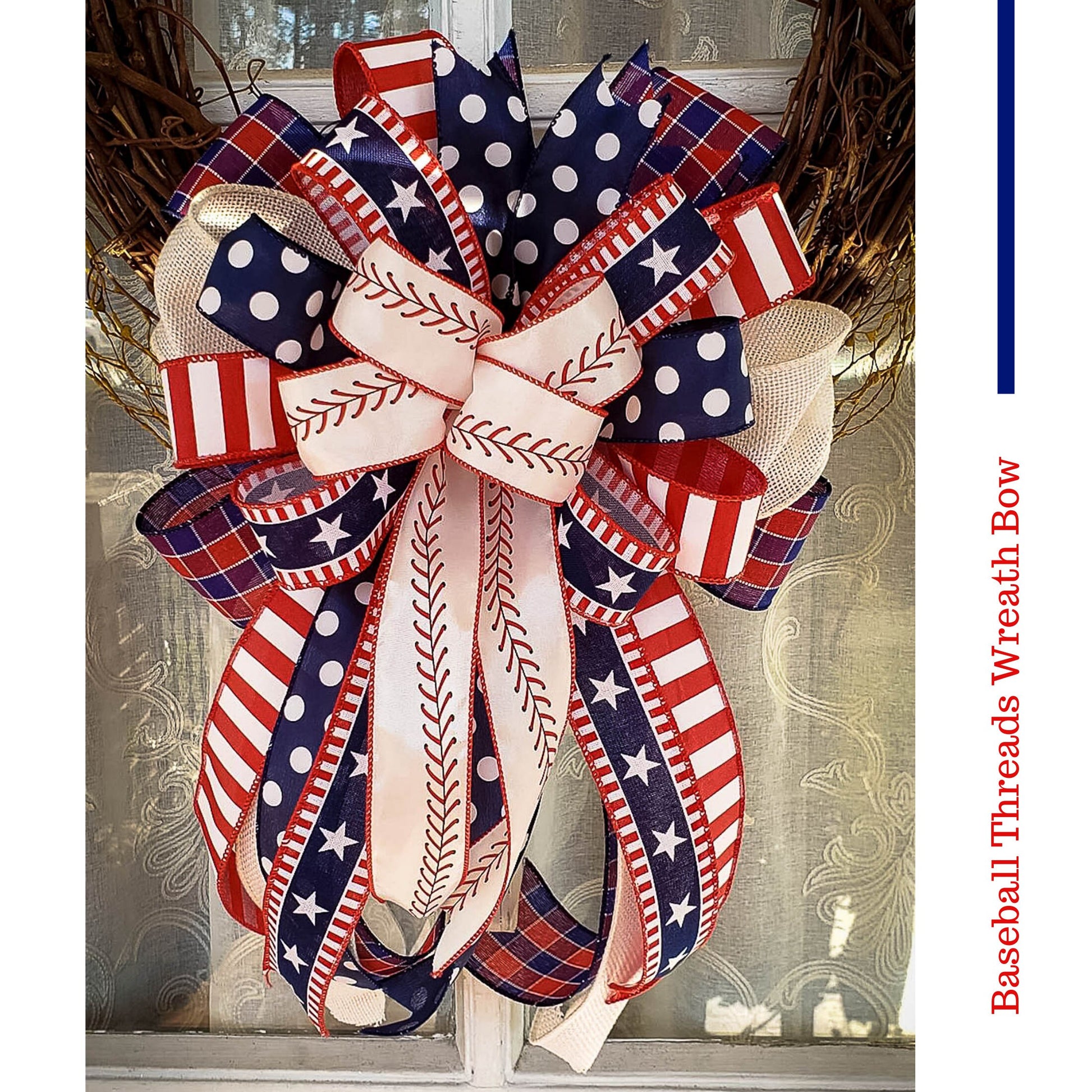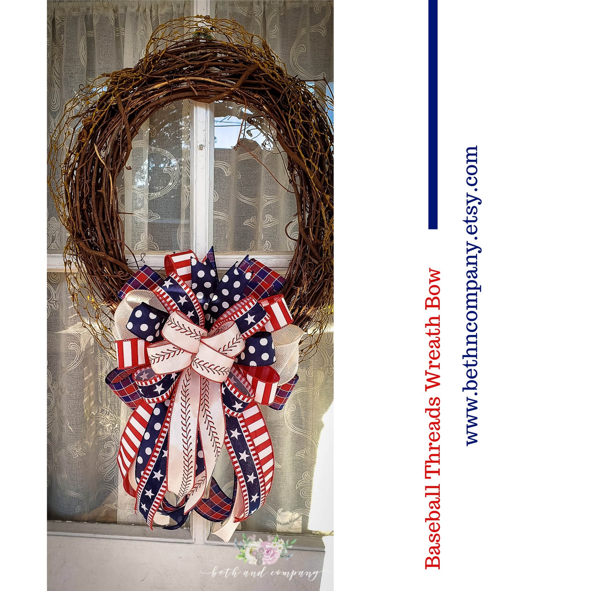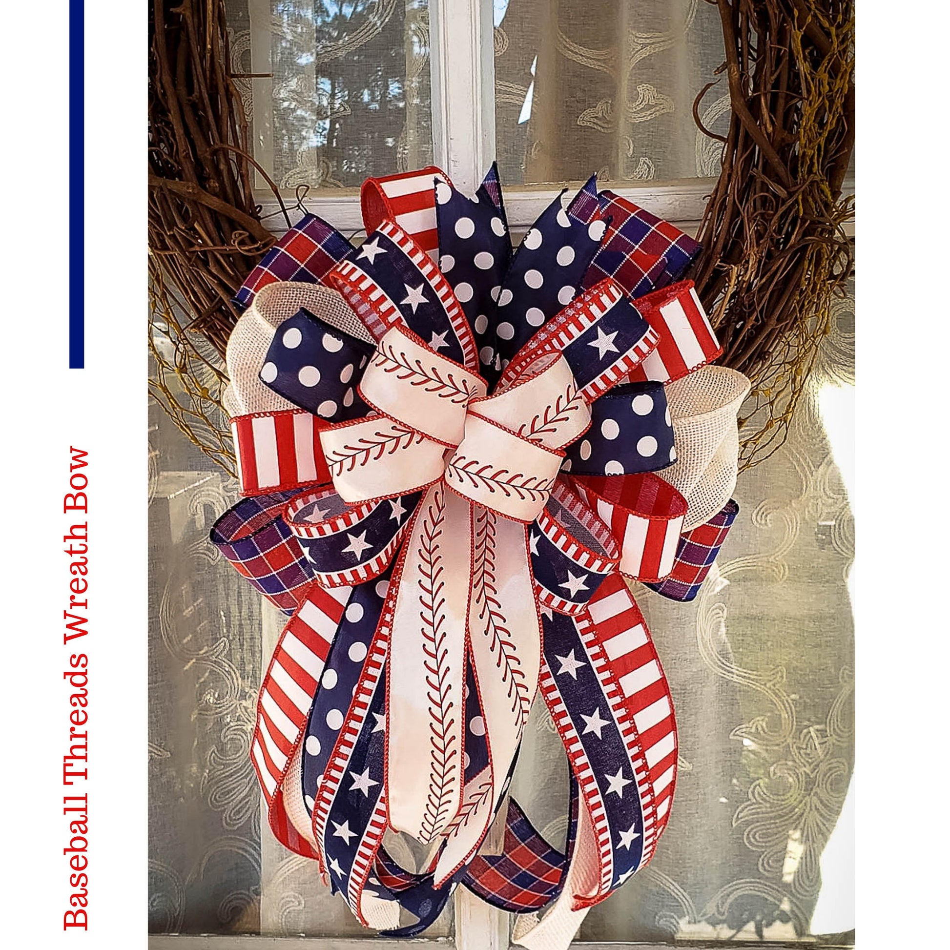 Patriotic Bow Baseball Threads Wreath Bow Red White and Blue bow Labor Day American Patriotic Decor Eagle Scout Decor