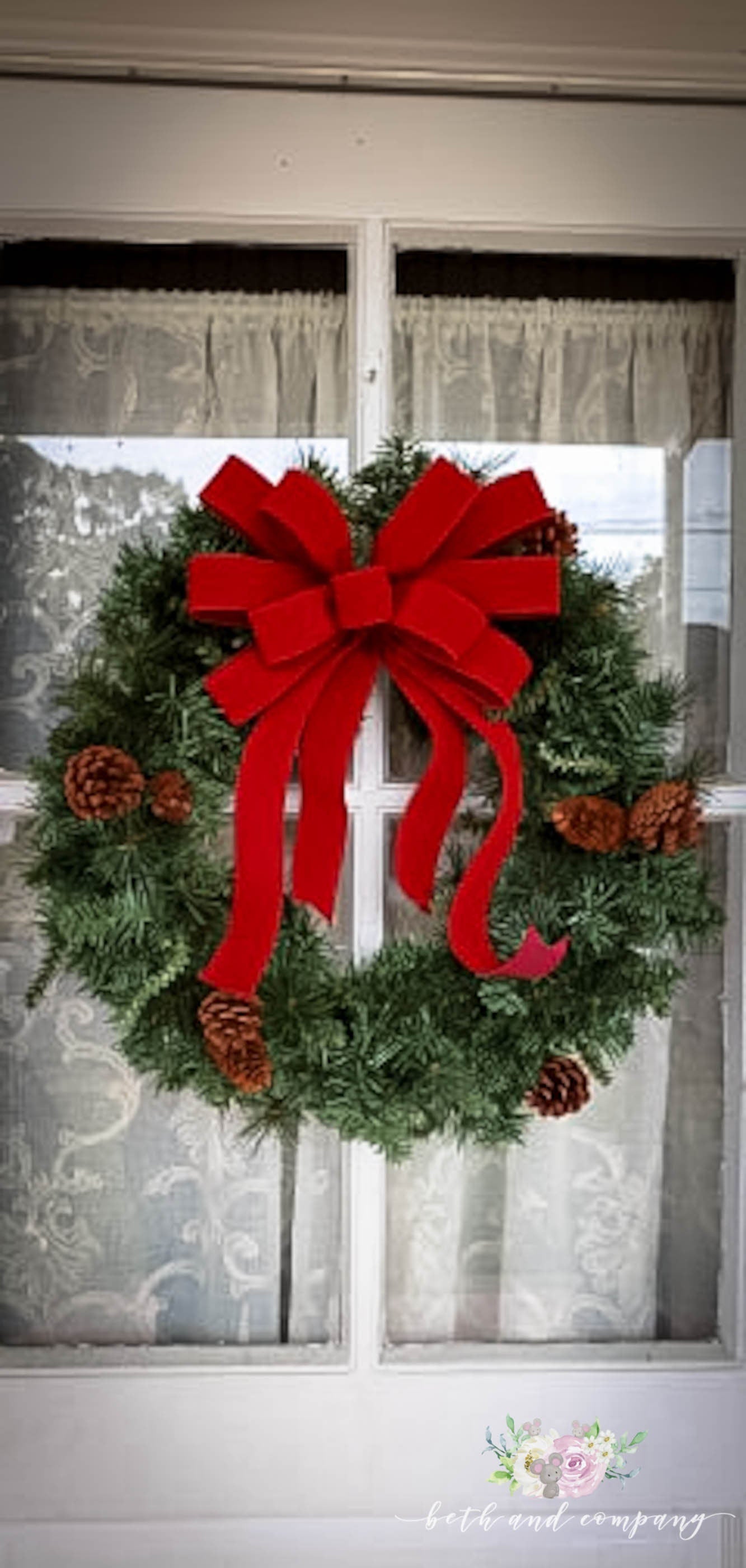 Red Velvet Bow, Christmas Bow, Outdoor Traditional Red Velvet Christmas wreath bow. (Wreath not included) Excellent quality 1.5" wide wired weatherproof velvet ribbon