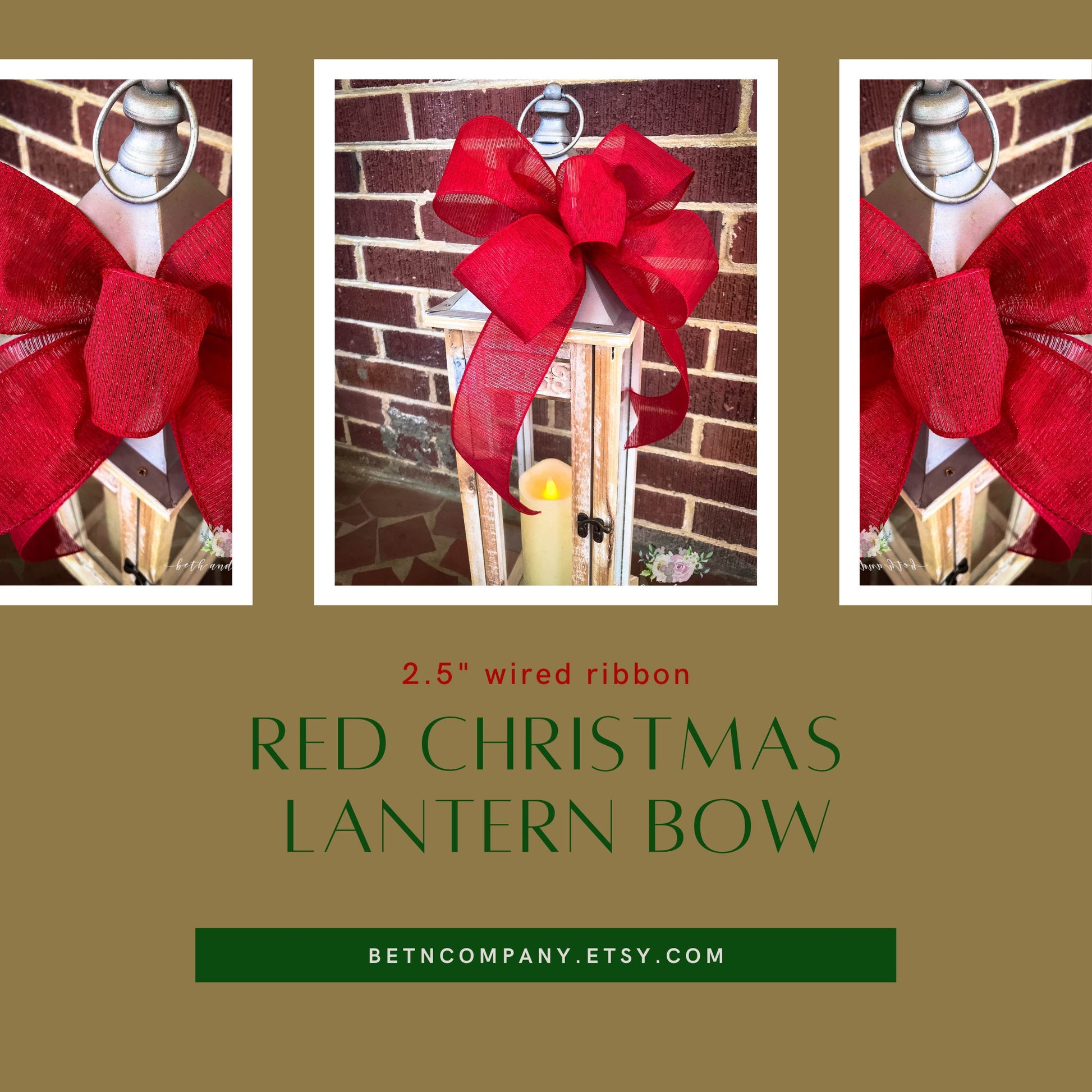 Red Christmas Bow Lantern bow Sheer Red bow for Christmas Trees Gift Basket bow