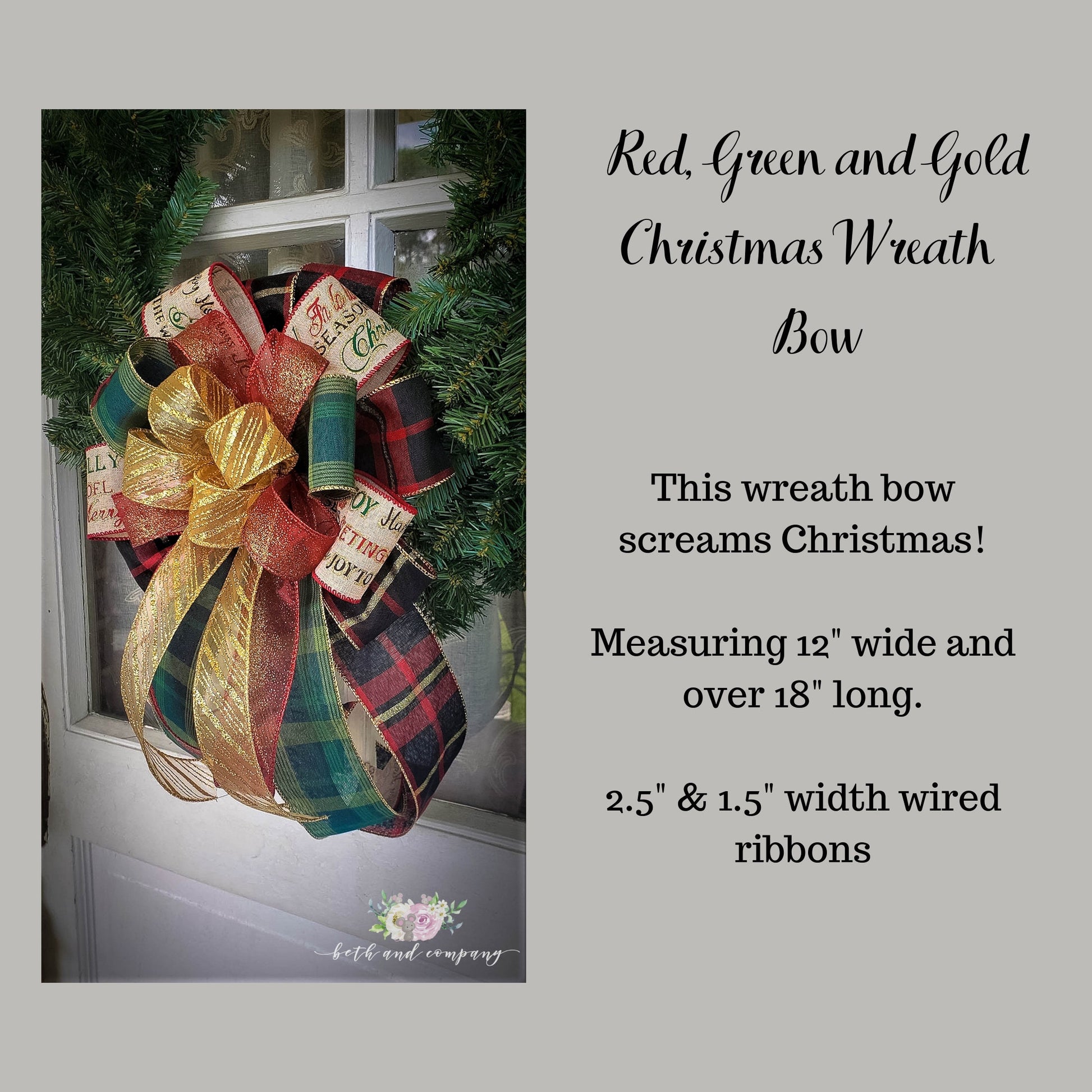 Red Green and Gold Christmas Wreath Bow, Christmas Wedding Bows