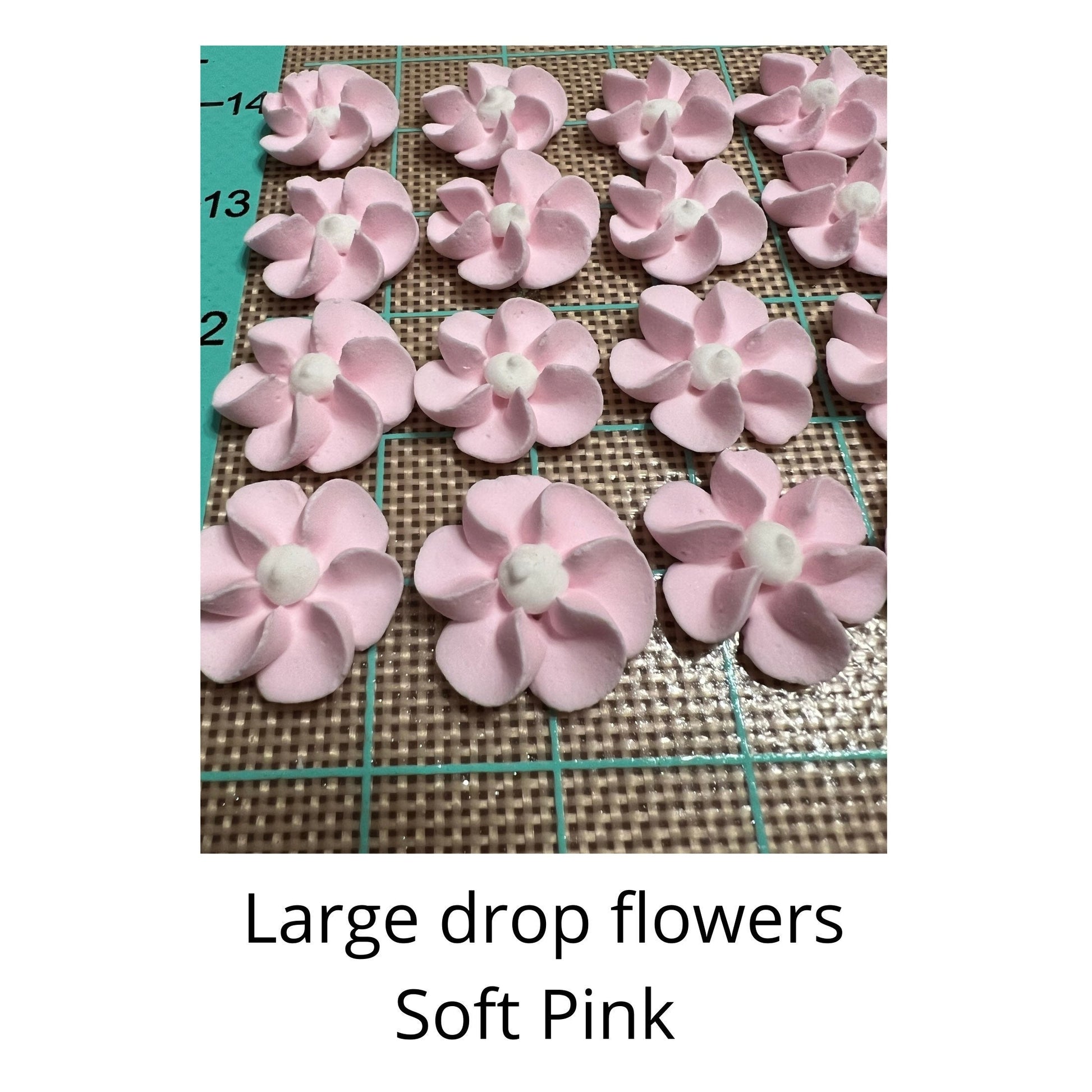 Royal Icing Flowers Large Soft Pink Edible Drop Flowers Sugar Flowers for Cake Decorating Cookie Decor Cake Toppers