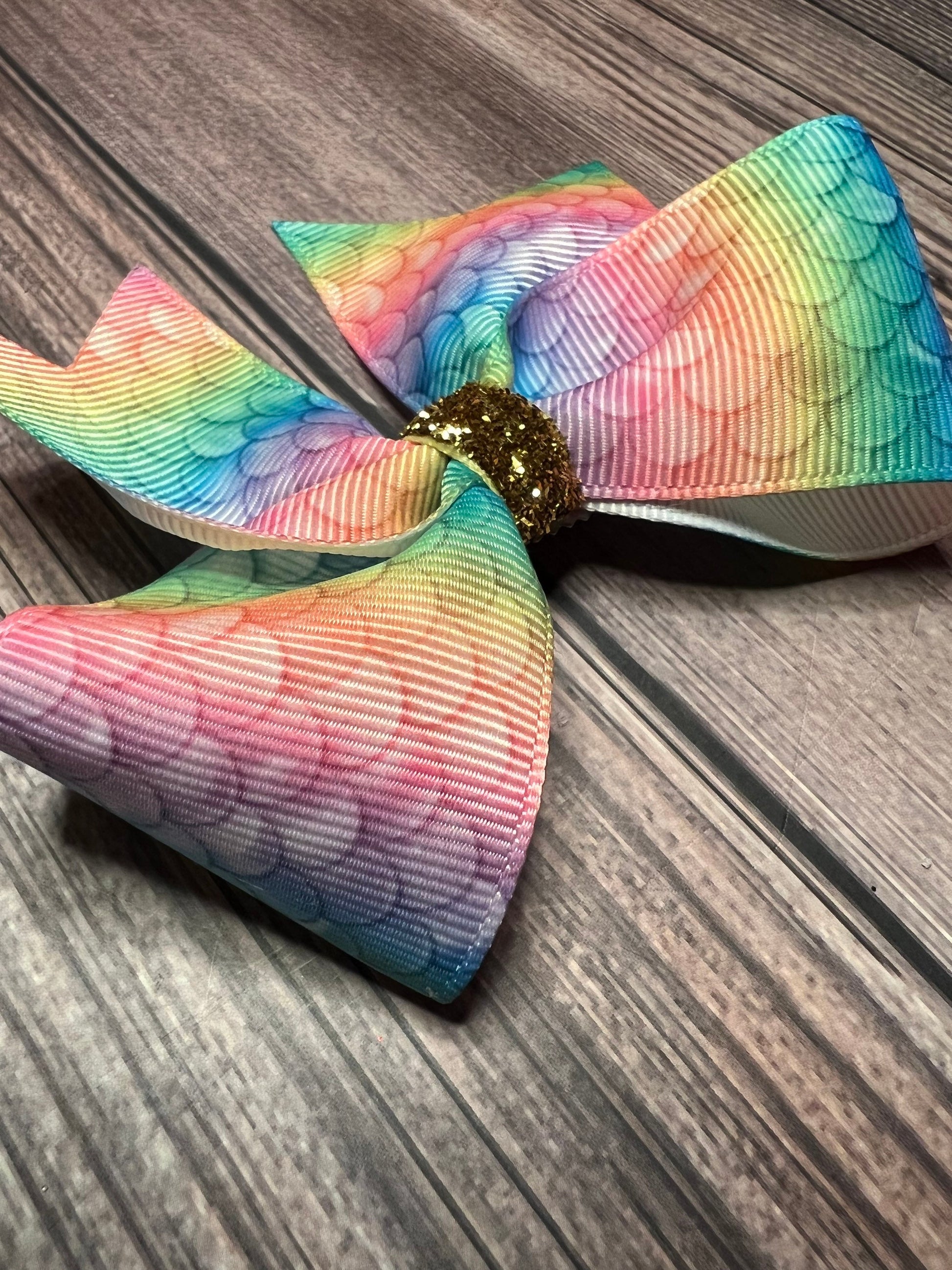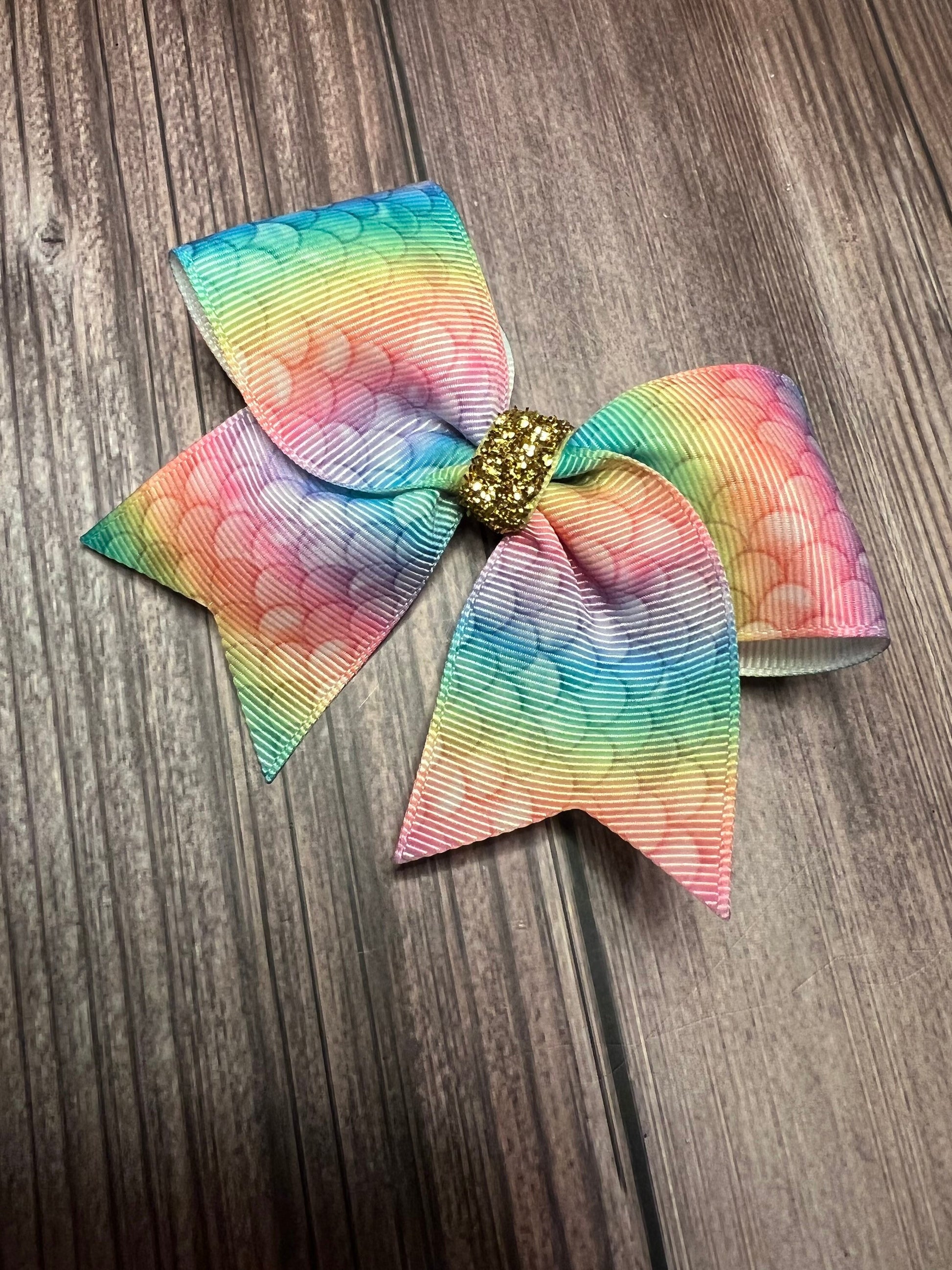 Small Hair-bow, Mermaid Toddler Hair Bow, Rainbow Mermaid, Clip on Toddler Bow