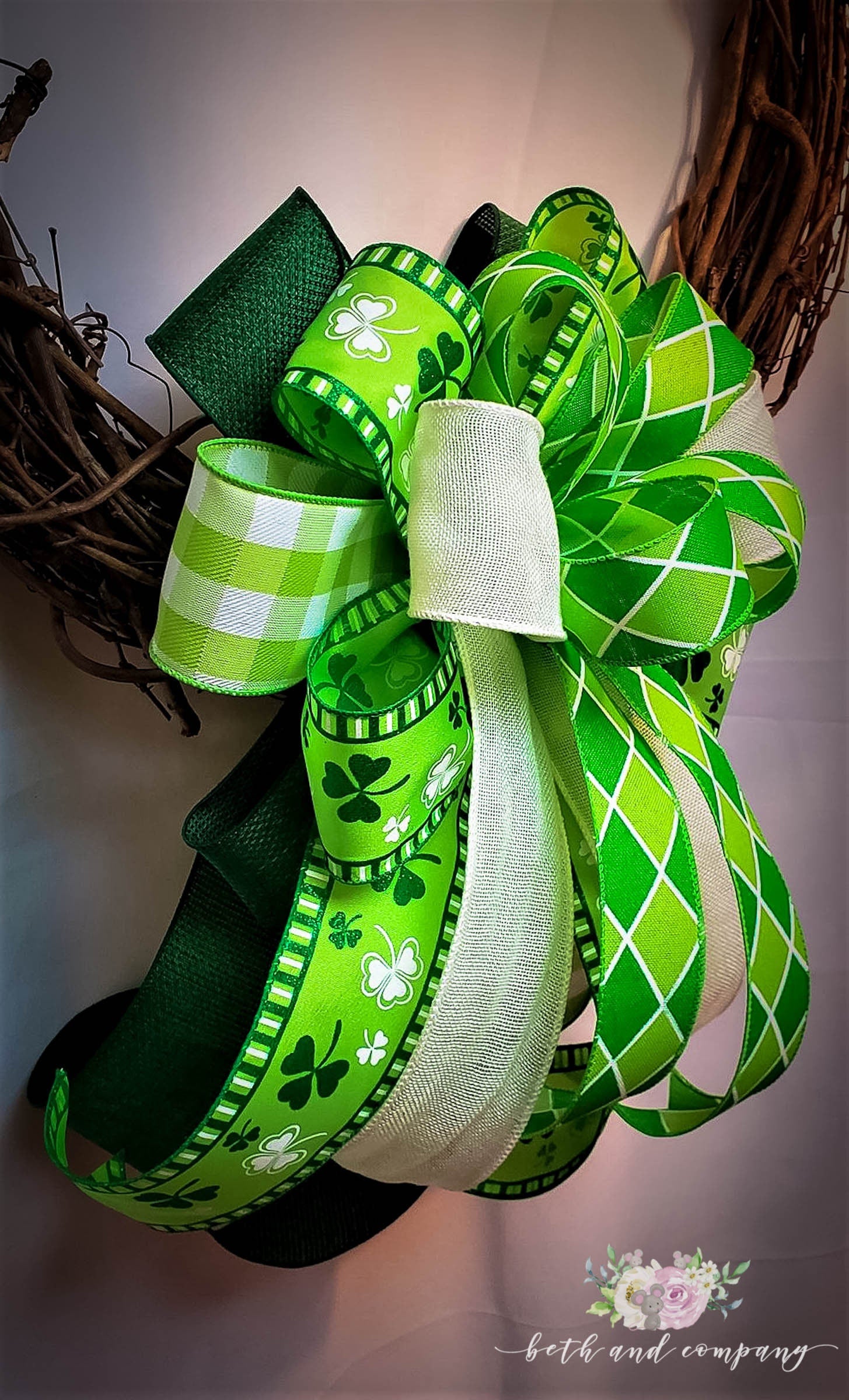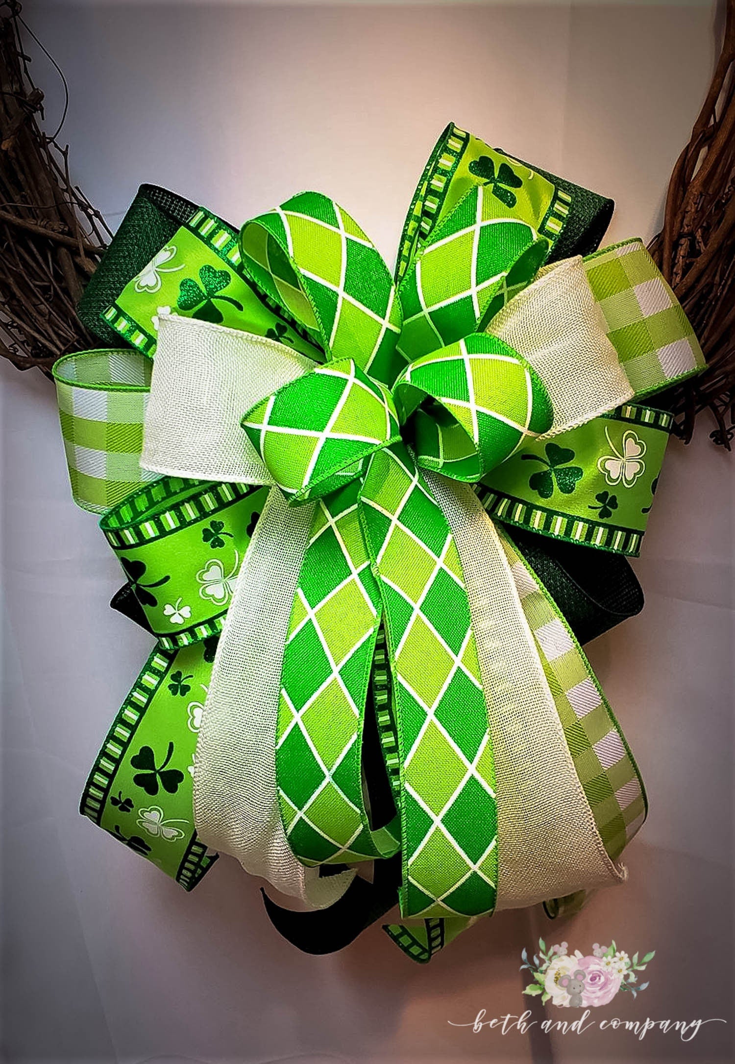 St Patricks Day Bow for the front door, St Pattys day wreath bow, Shamrock bow for mailbox, St Patricks Lantern Bow, Green bow, Green Wreath Bow for St Pattys