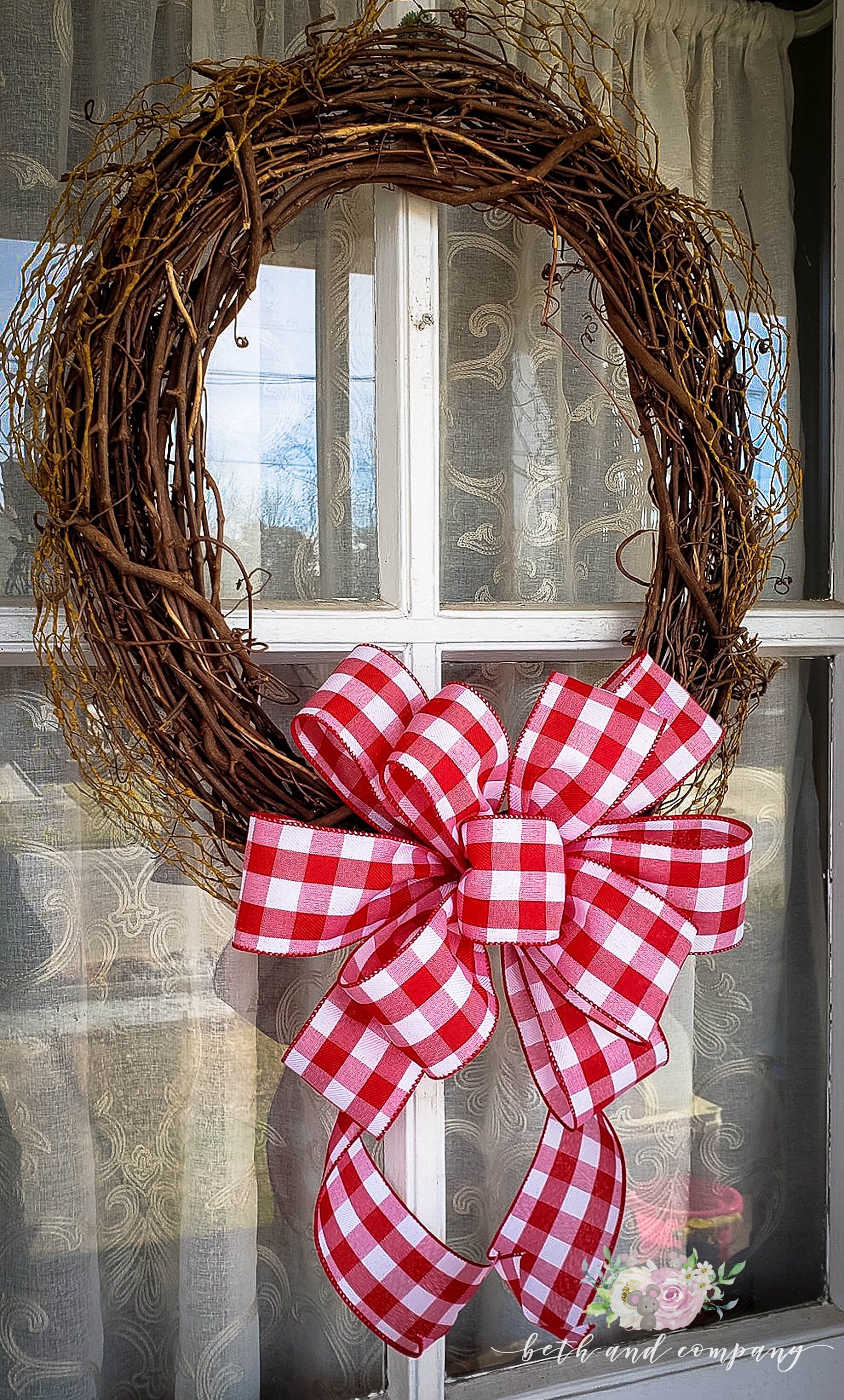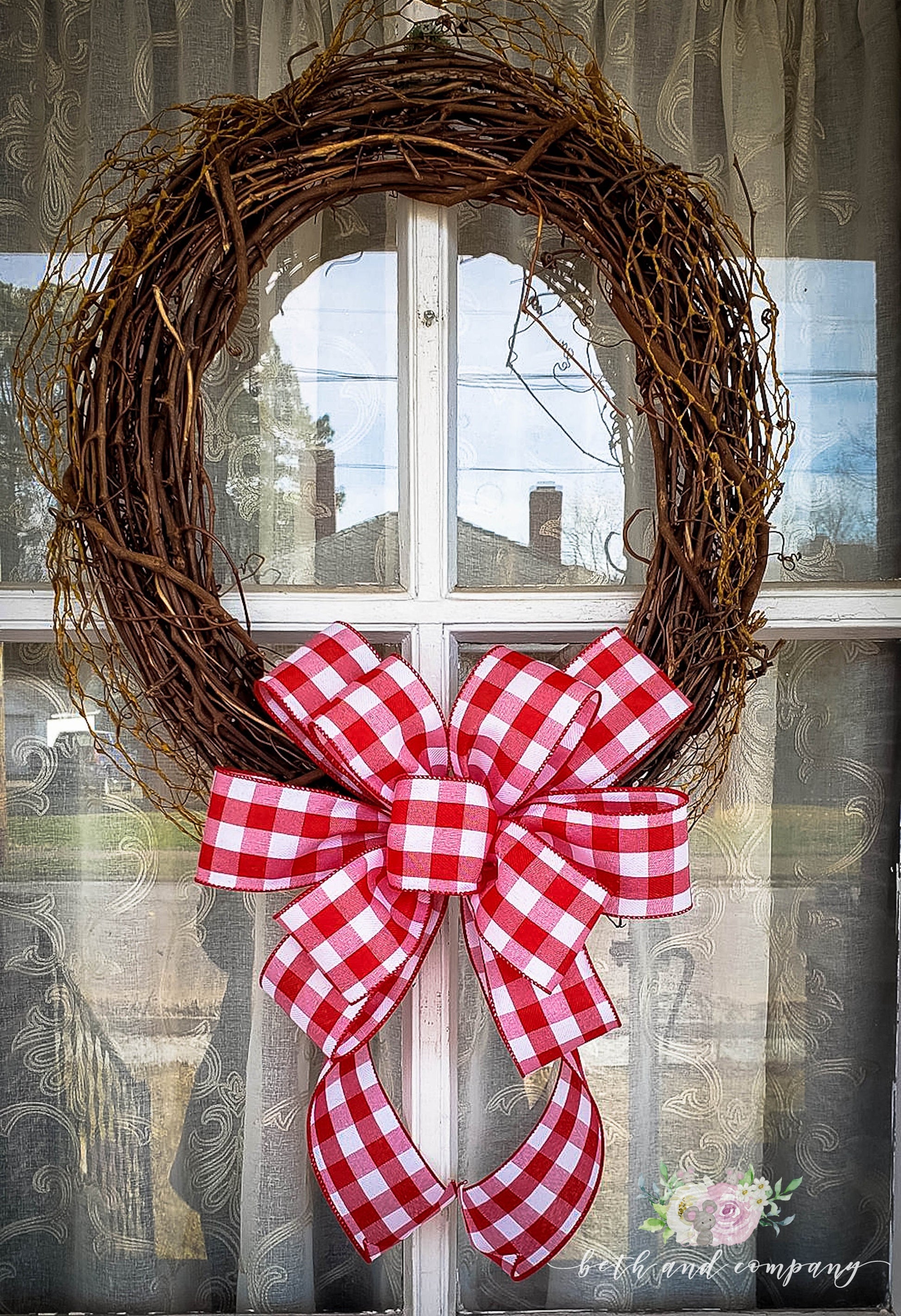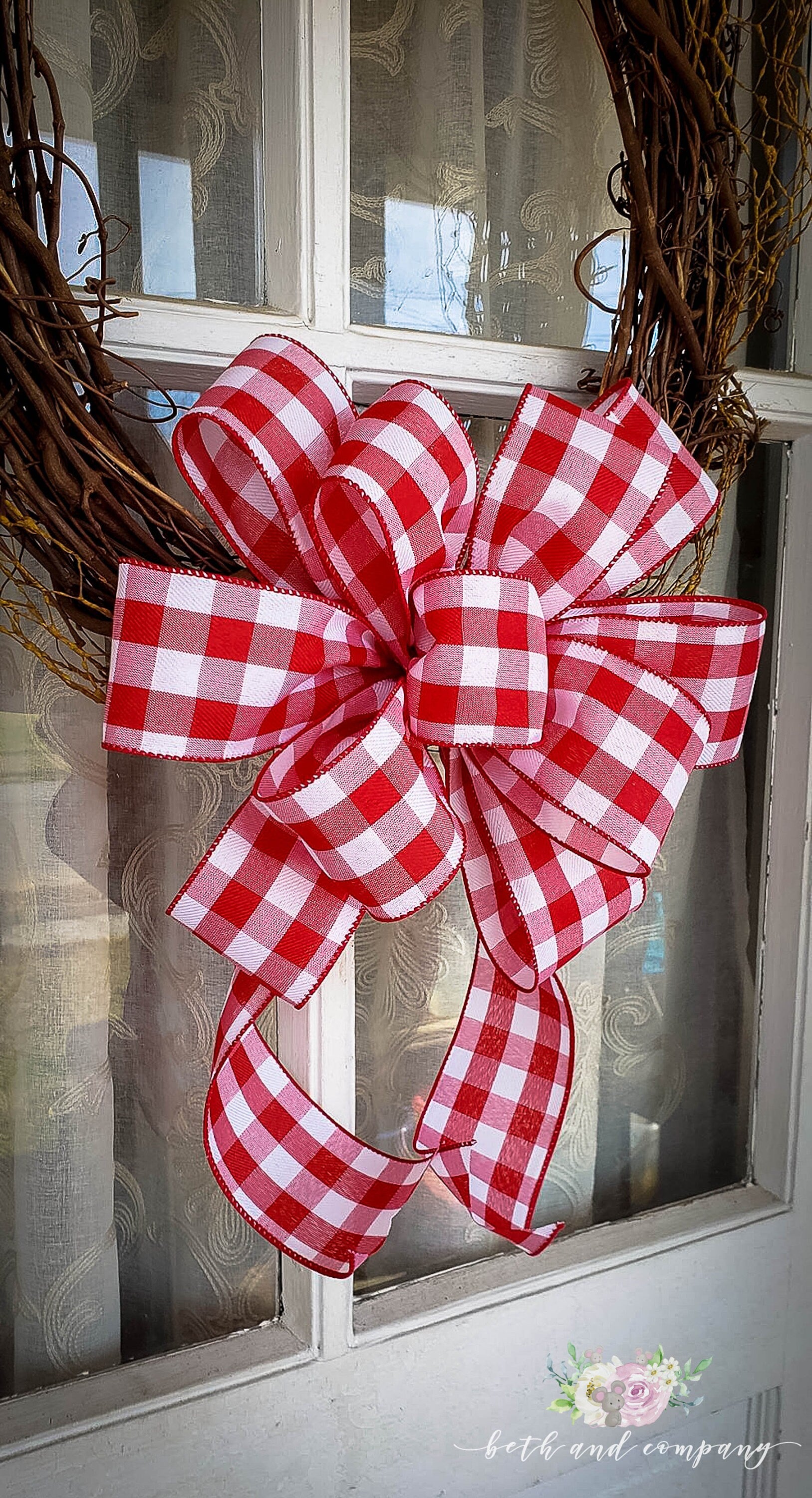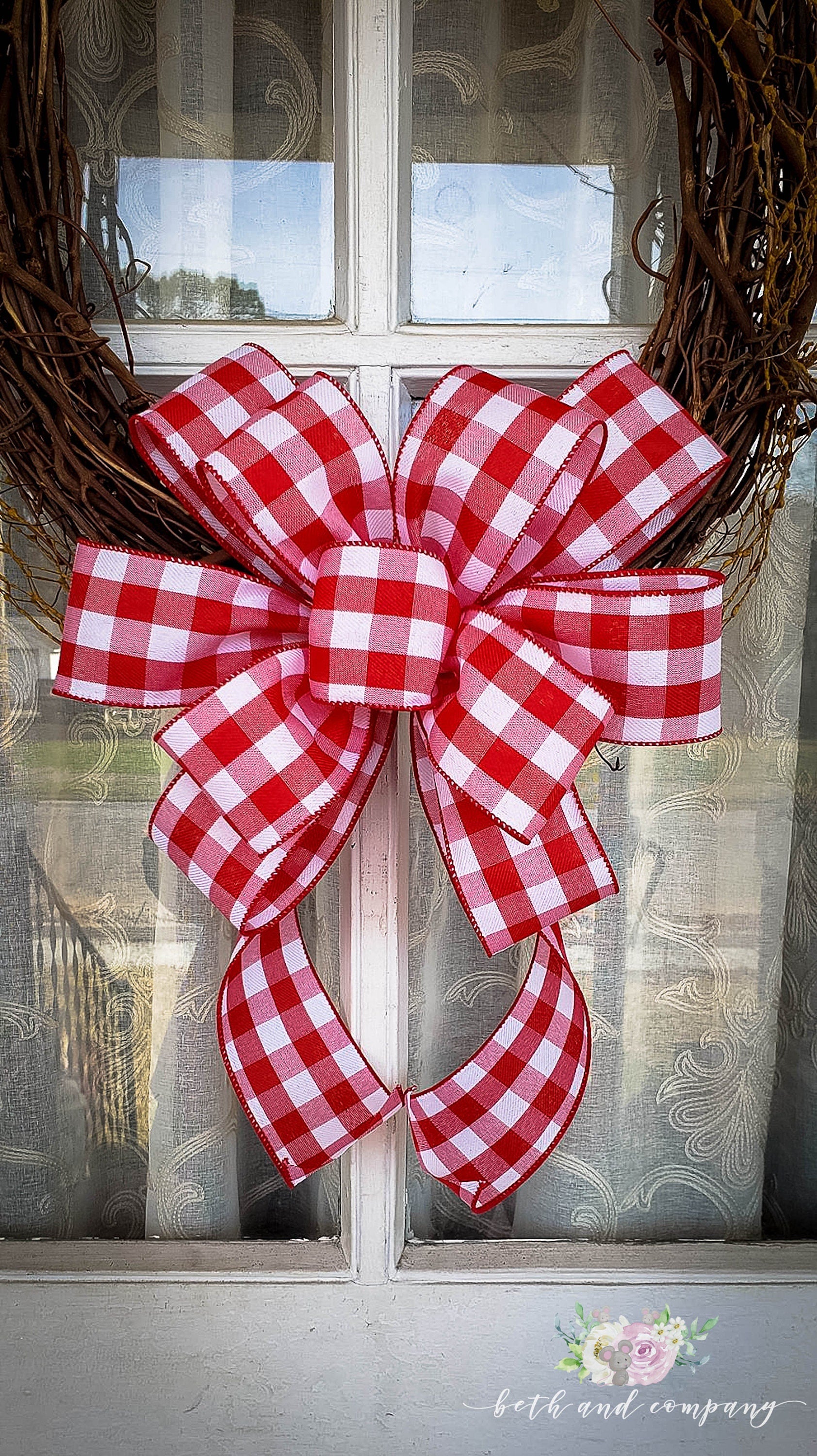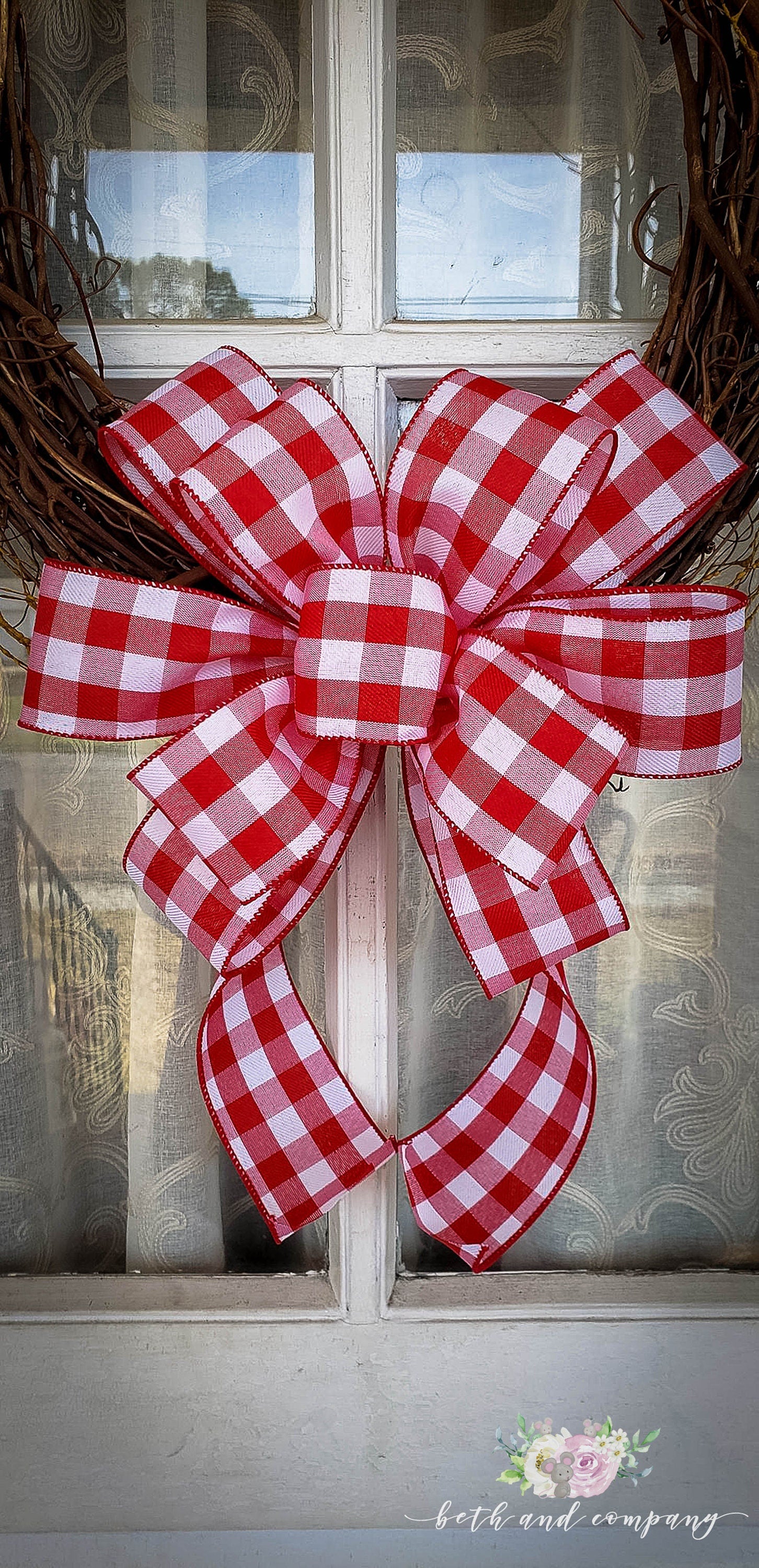 Thin profile red and white Buffalo Plaid Valentine wreath bow. Made to order.