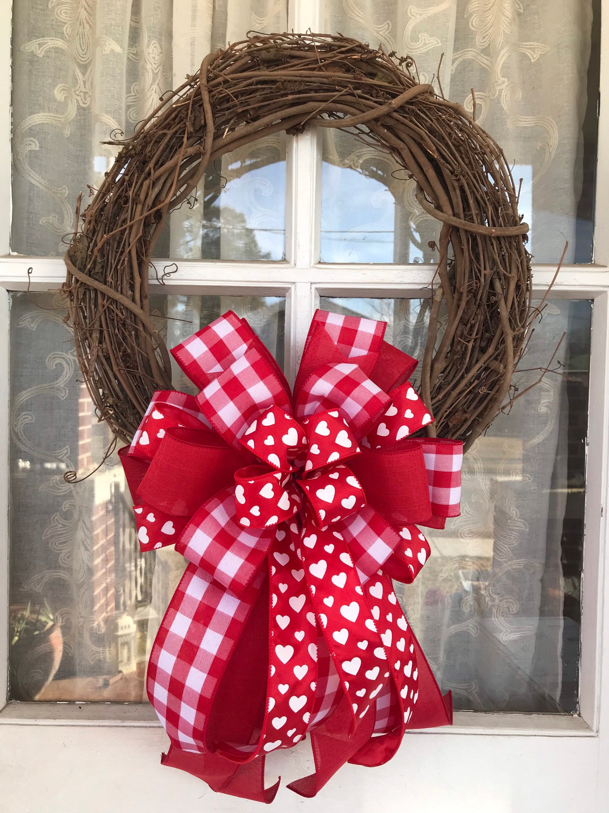 Valentine's Day Buffalo Plaid Wreath Bow, Farmhouse Valentines Day Decoration
