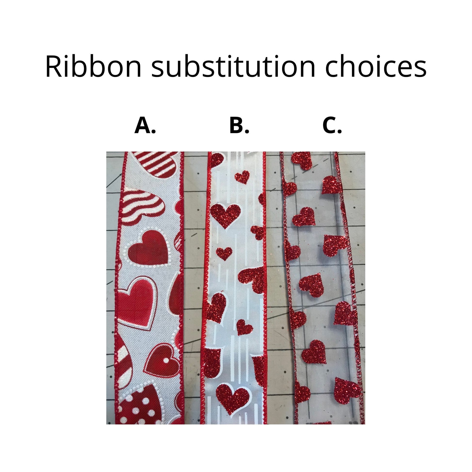 Choose “D” if you want the bow in the first picture, red ribbon with white hearts.