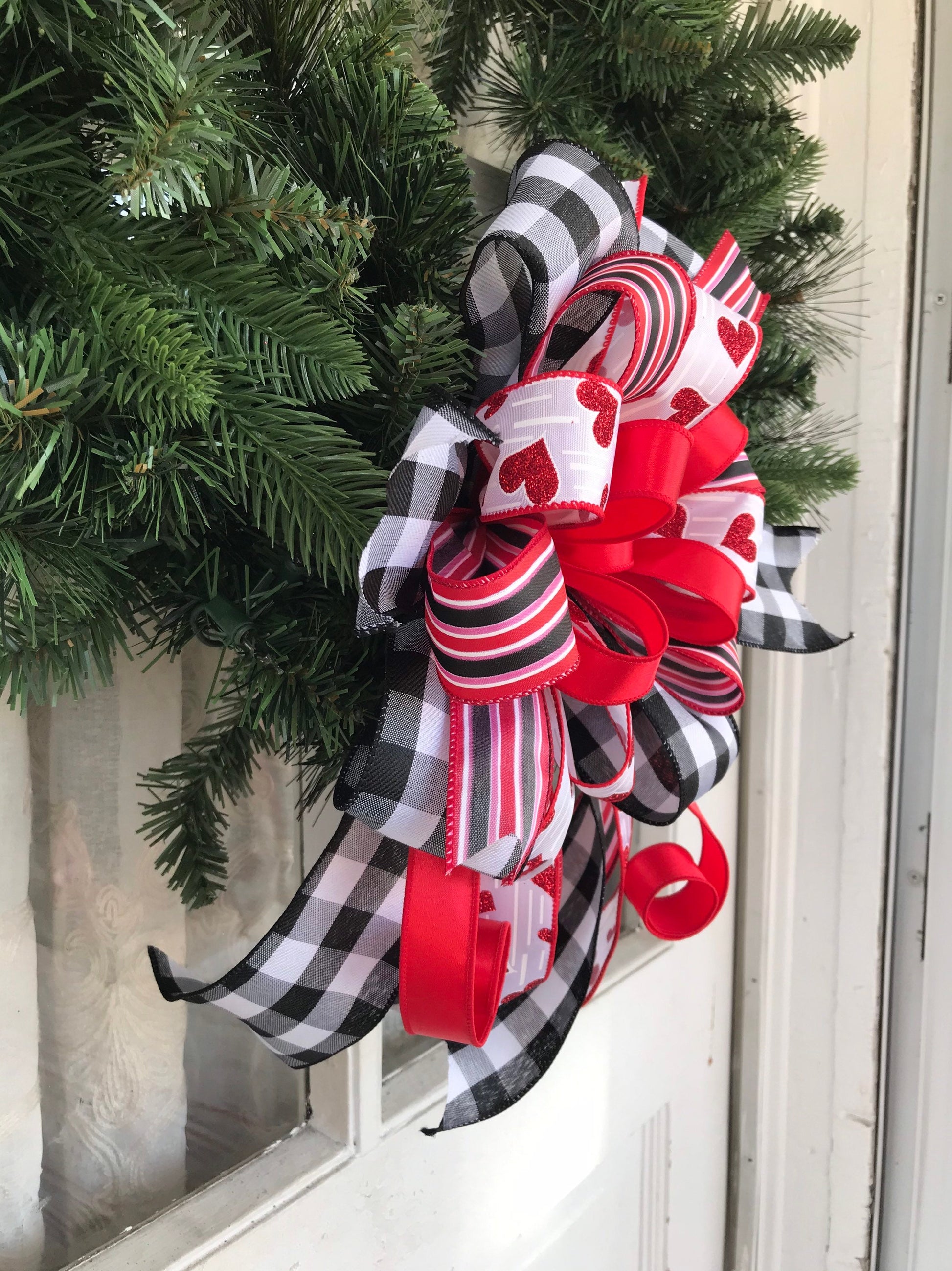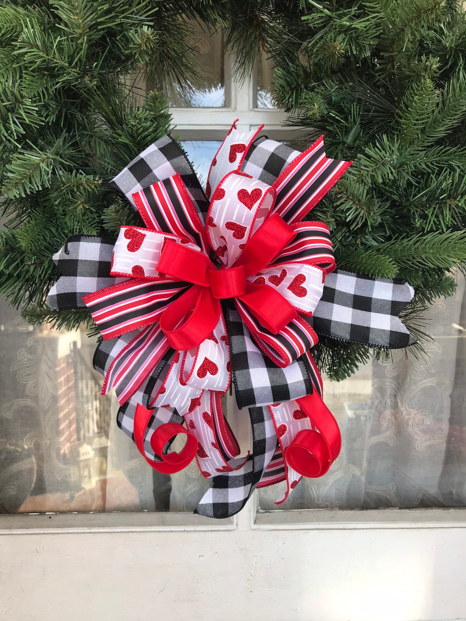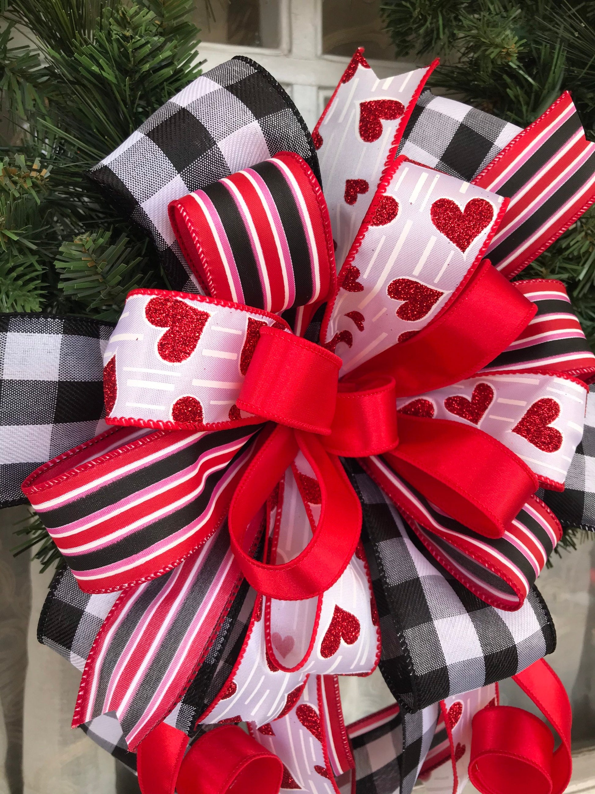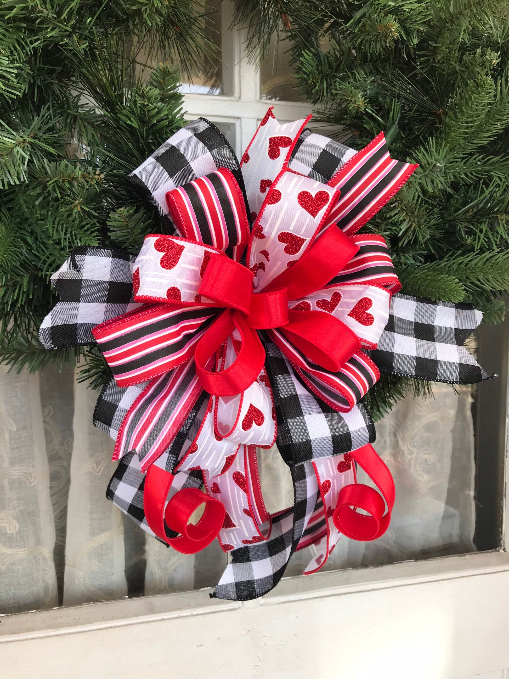 Valentine's Day Wreath Bow, Mixed Ribbon Buffalo Plaid Bow