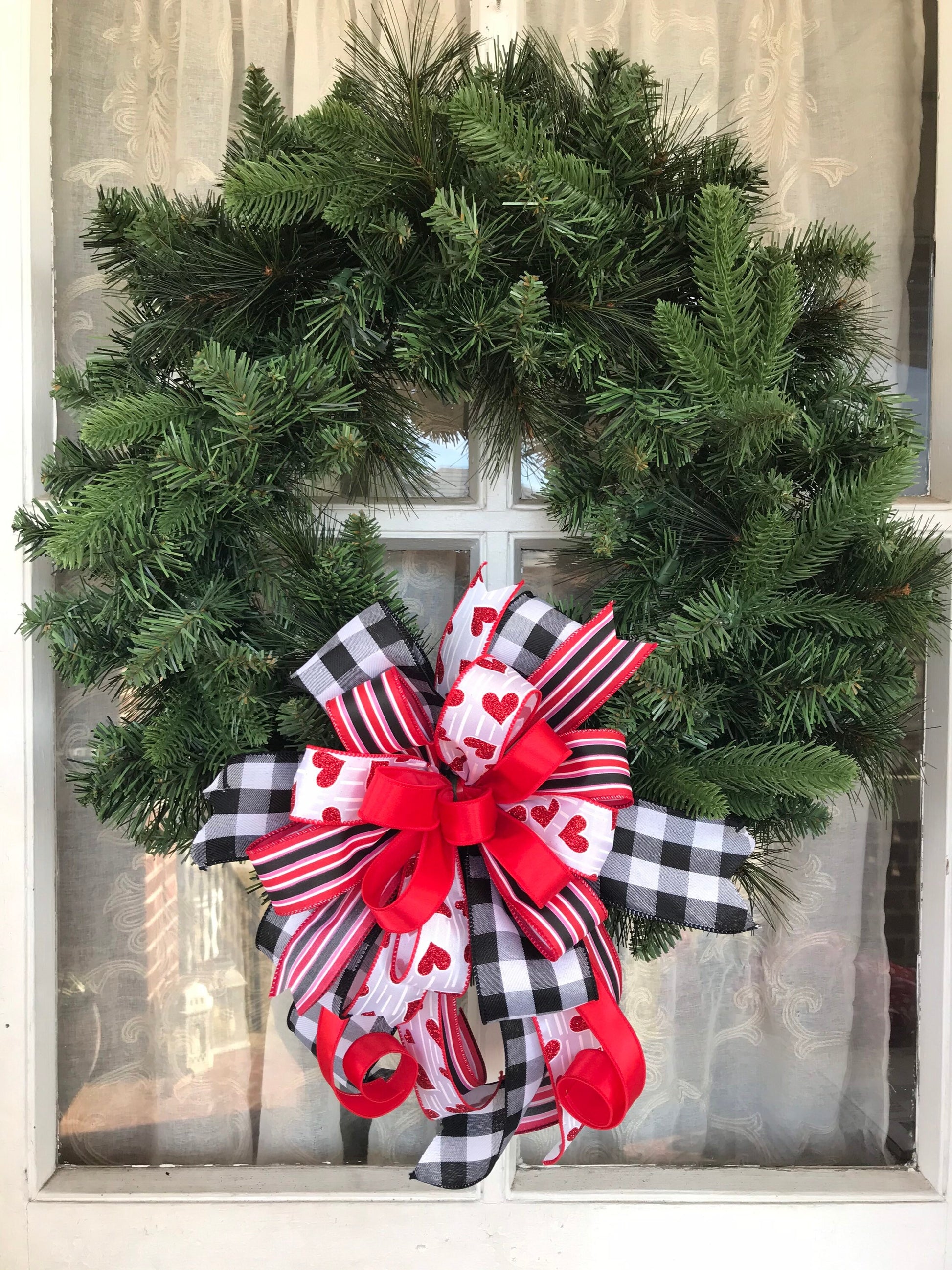 This Valentine Buffalo plaid wreath bow is perfect for your farmhouse valentine decor.